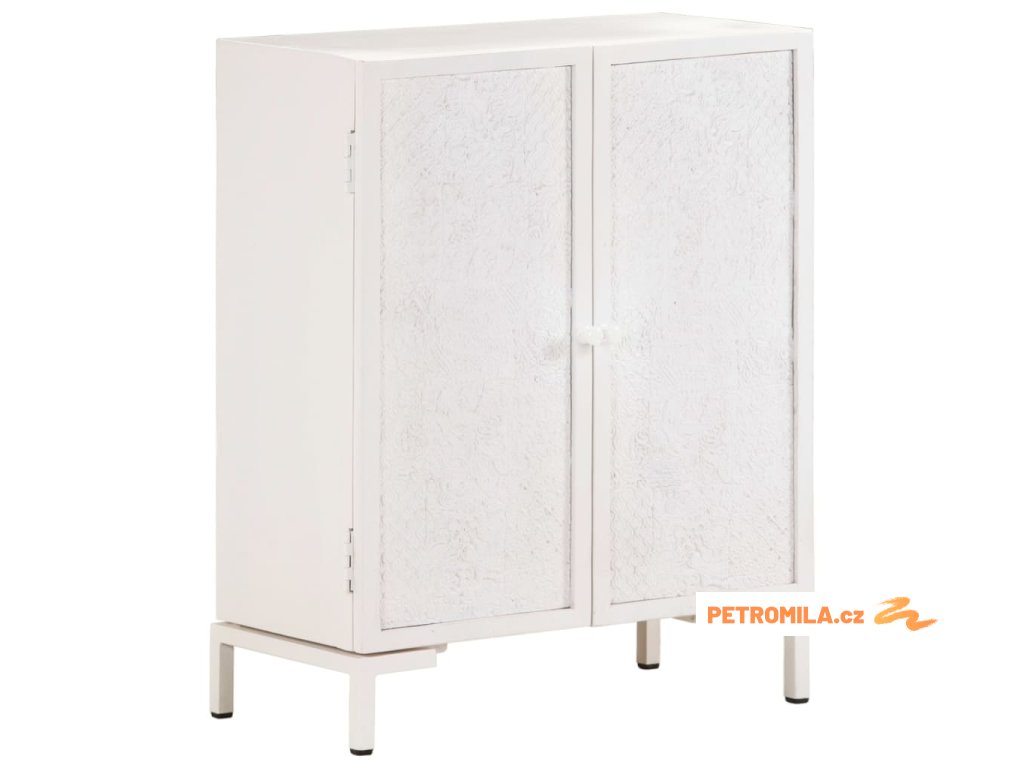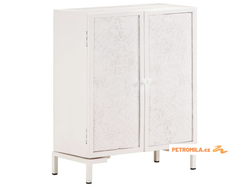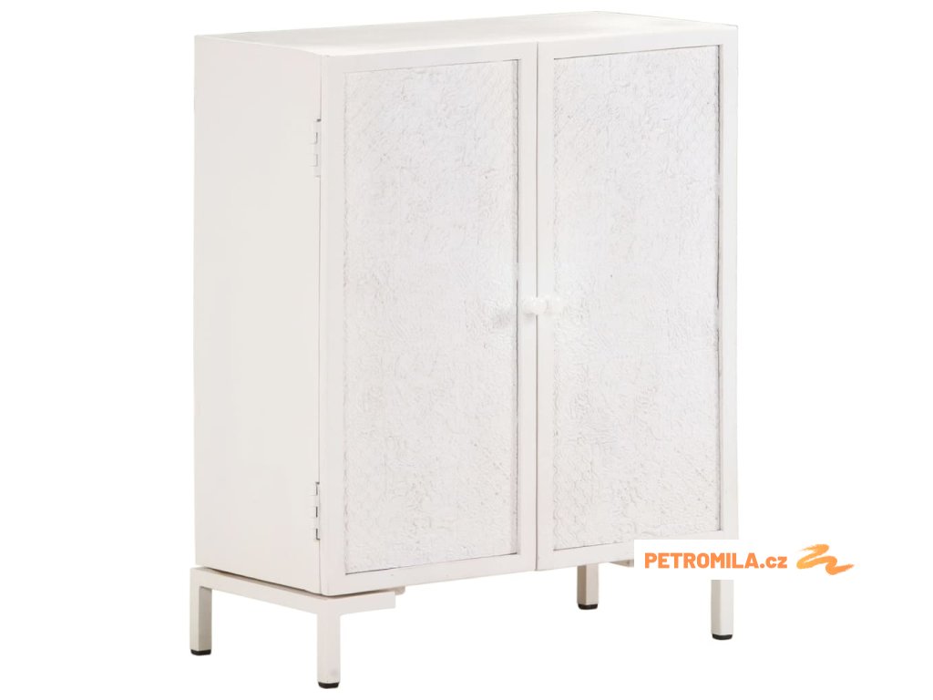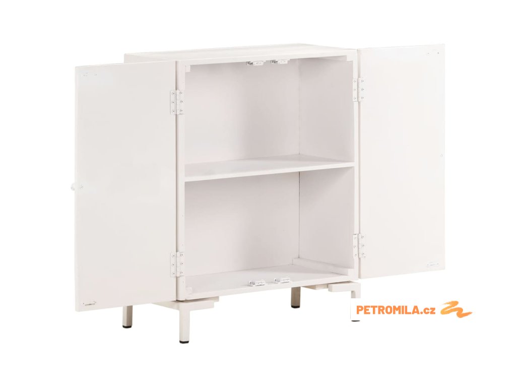 Odkládací skříňka je vyrobená z masivního mangovníku. Toto tropické tvrdé dřevo dokáže unést značnou váhu a skvěle odolává zubu času, takže je velice stabilní a odolné. Práškově lakovaný železný rám přispívá k celkové stabilitě skříňky. Ve skříňce jsou přihrádky se 2 dvířky, za kterými najdete spoustu úložného prostoru. Pevná horní deska je perfektní k vystavení nejrůznějších dekorací, jako jsou zarámované fotografie, pokojové rostliny, vázy apod.