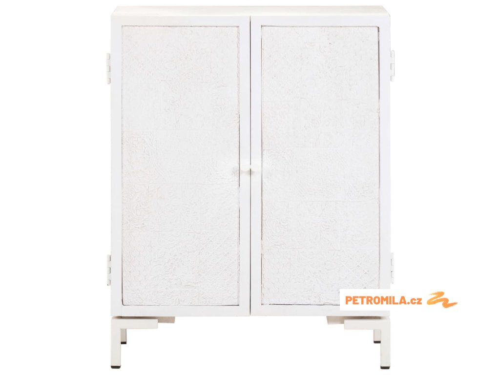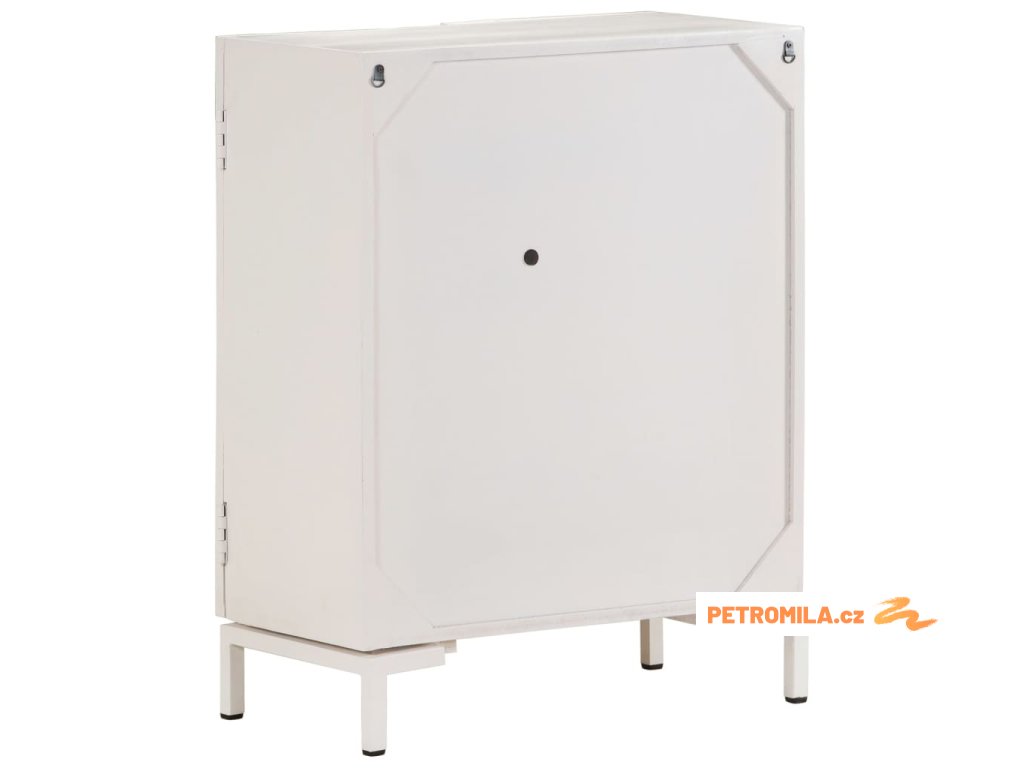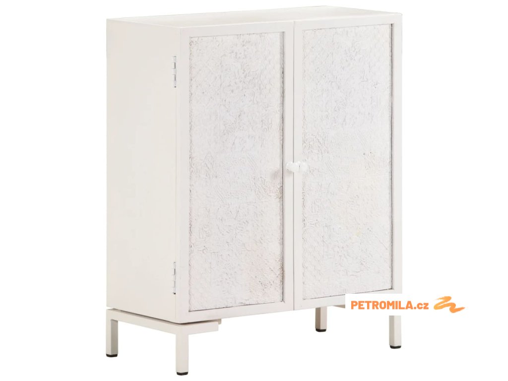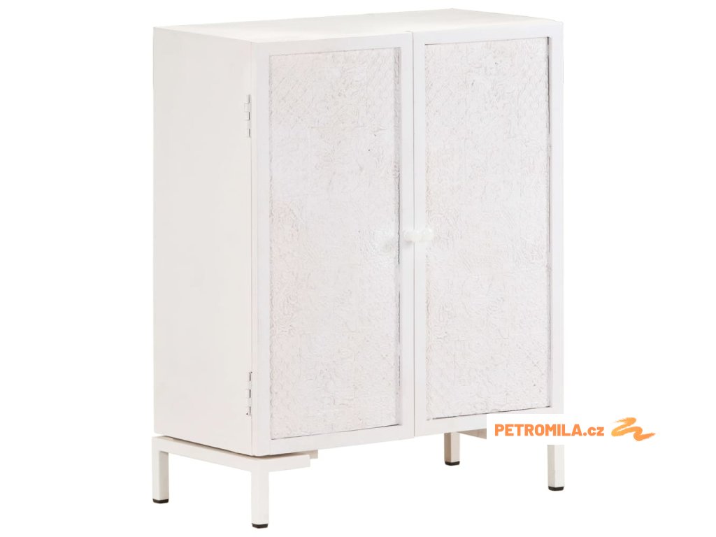 Odkládací skříňka je vyrobená z masivního mangovníku. Toto tropické tvrdé dřevo dokáže unést značnou váhu a skvěle odolává zubu času, takže je velice stabilní a odolné. Práškově lakovaný železný rám přispívá k celkové stabilitě skříňky. Ve skříňce jsou přihrádky se 2 dvířky, za kterými najdete spoustu úložného prostoru. Pevná horní deska je perfektní k vystavení nejrůznějších dekorací, jako jsou zarámované fotografie, pokojové rostliny, vázy apod.