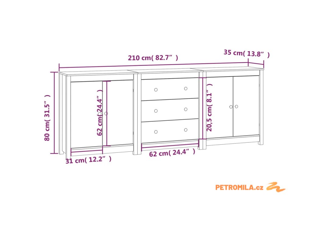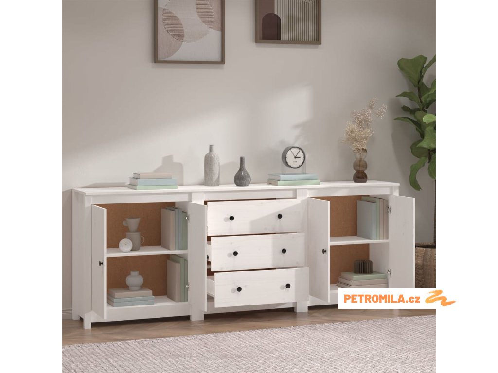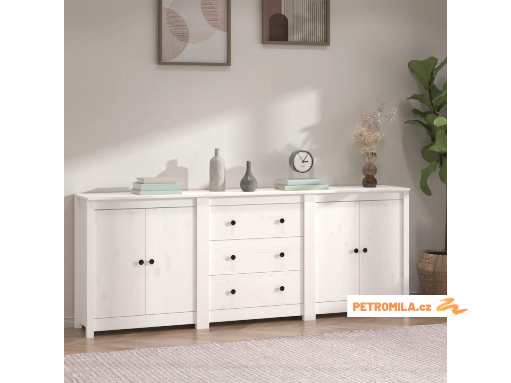 Příborník bílý 210x35x80 cm masivní borové dřevo