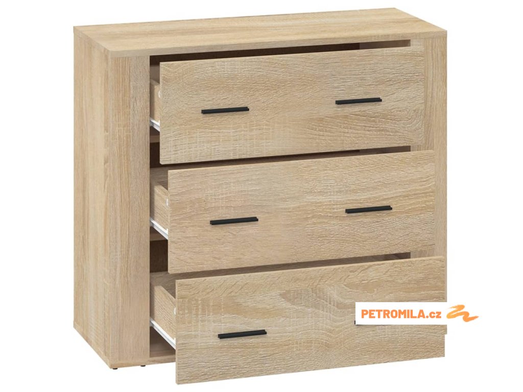 - Robustní horní deska: Na horní desce skříňky si také můžete vystavit své oblíbené fotografie, dekorace nebo květiny, a zkrášlit tak svůj pokoj.