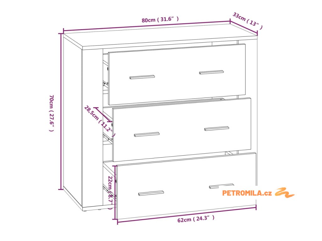 - Rozměry: 80 x 33 x 70 cm (Š x H x V)