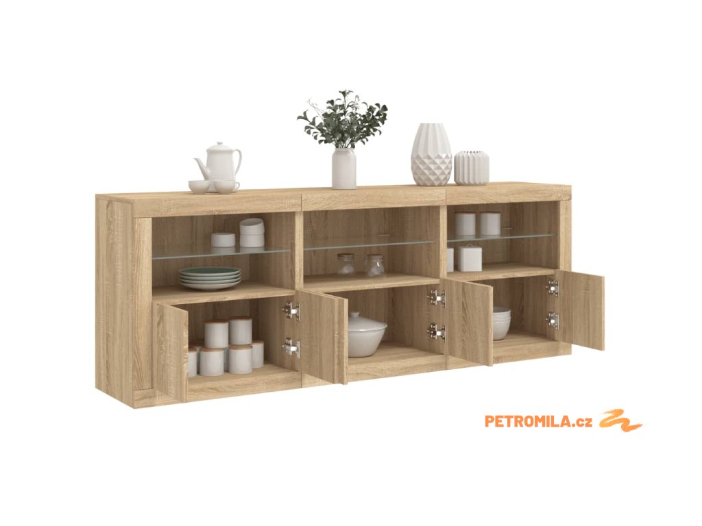 Zkrášlete svůj pokoj tímto moderním příborníkem s LED osvětlením. Snadno jej zkombinujete s nábytkem v jakémkoli stylu ve vašem domě.