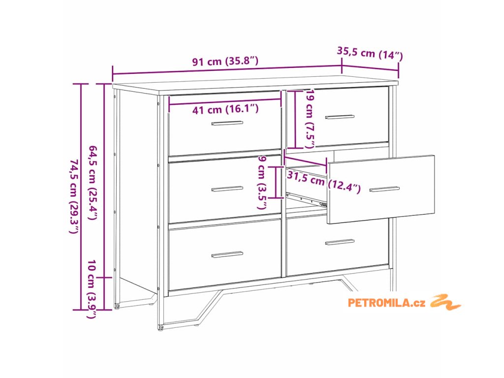 - Celkové rozměry: 91 x 35,5 x 74,5 cm (D x Š x V)