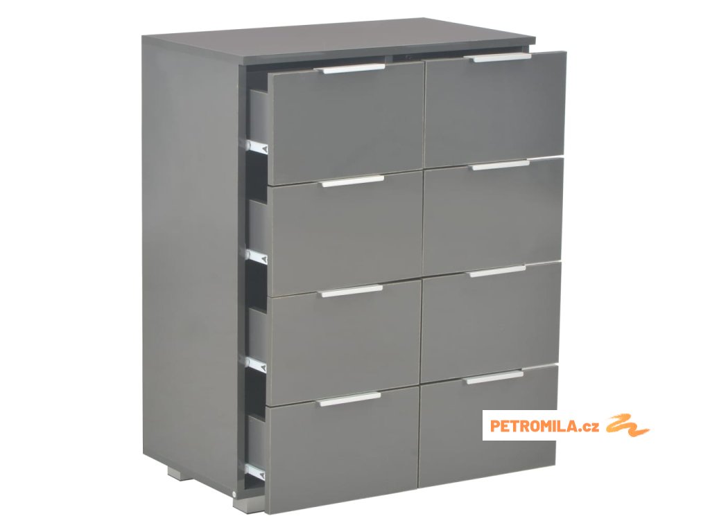 Skříňka se zásuvkami je vyrobena z kompozitního dřeva s vysoce lesklou povrchovou úpravou. Vyniká proto svým rafinovaným vzhledem a zároveň je mimořádně stabilní a odolná. V příborníku navíc najdete 8 zásuvek, které vám poskytnou spoustu místa, kde si budete moct uschovat různé předměty, které by se jinak povalovaly kolem. Tato úložná skříňka s vysoce lesklým povrchem se snadno čistí.