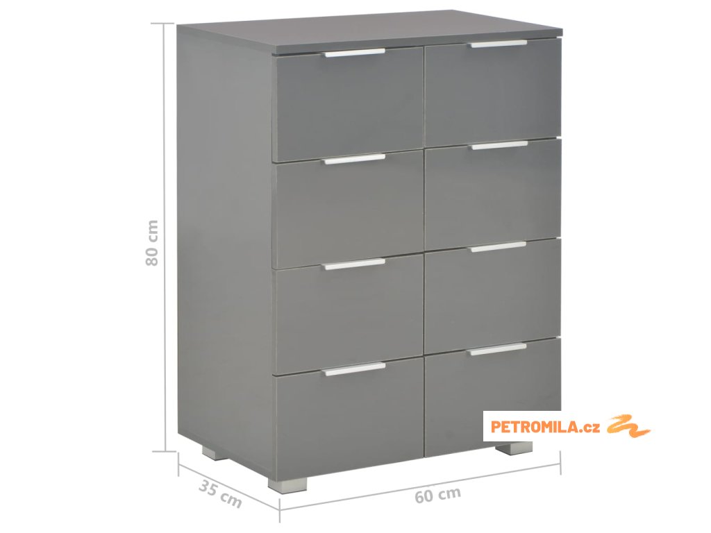 Příborník šedý s vysokým leskem 60x35x80 cm kompozitní dřevo