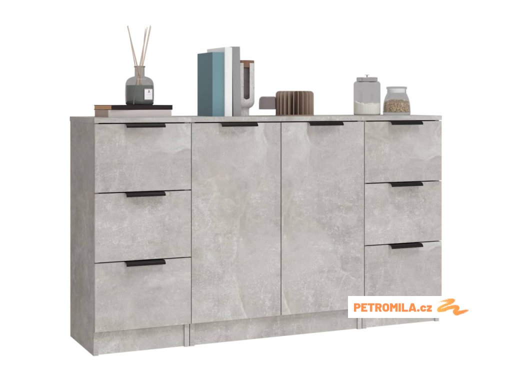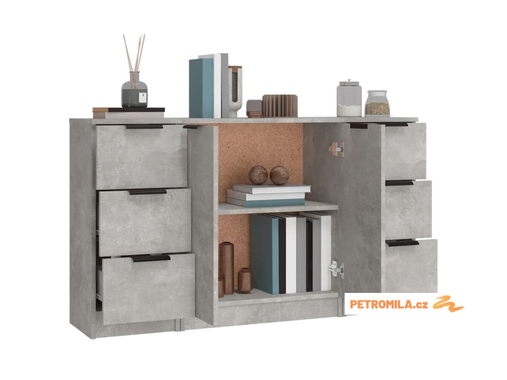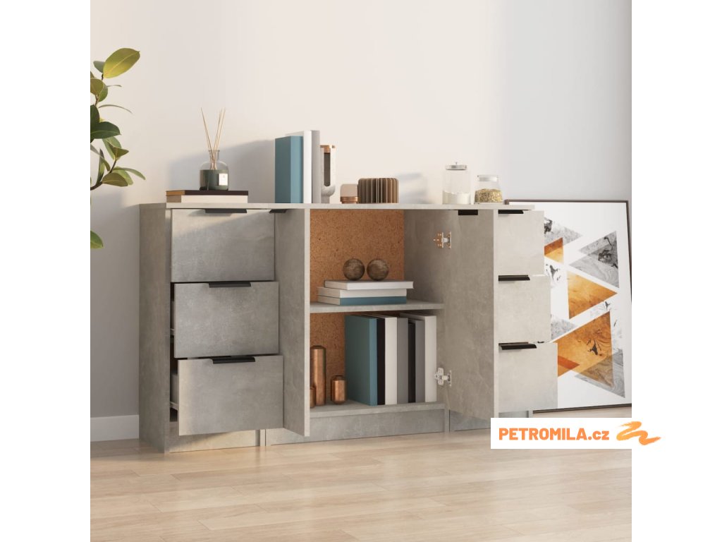 Příborníky 3 ks betonově šedé kompozitní dřevo