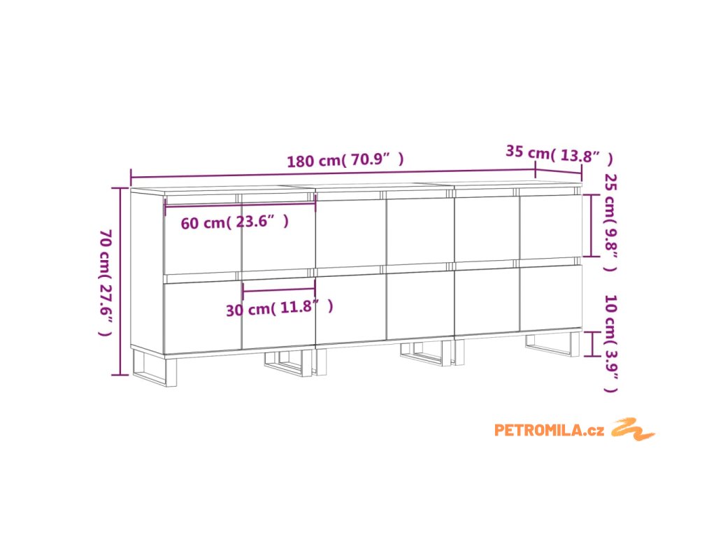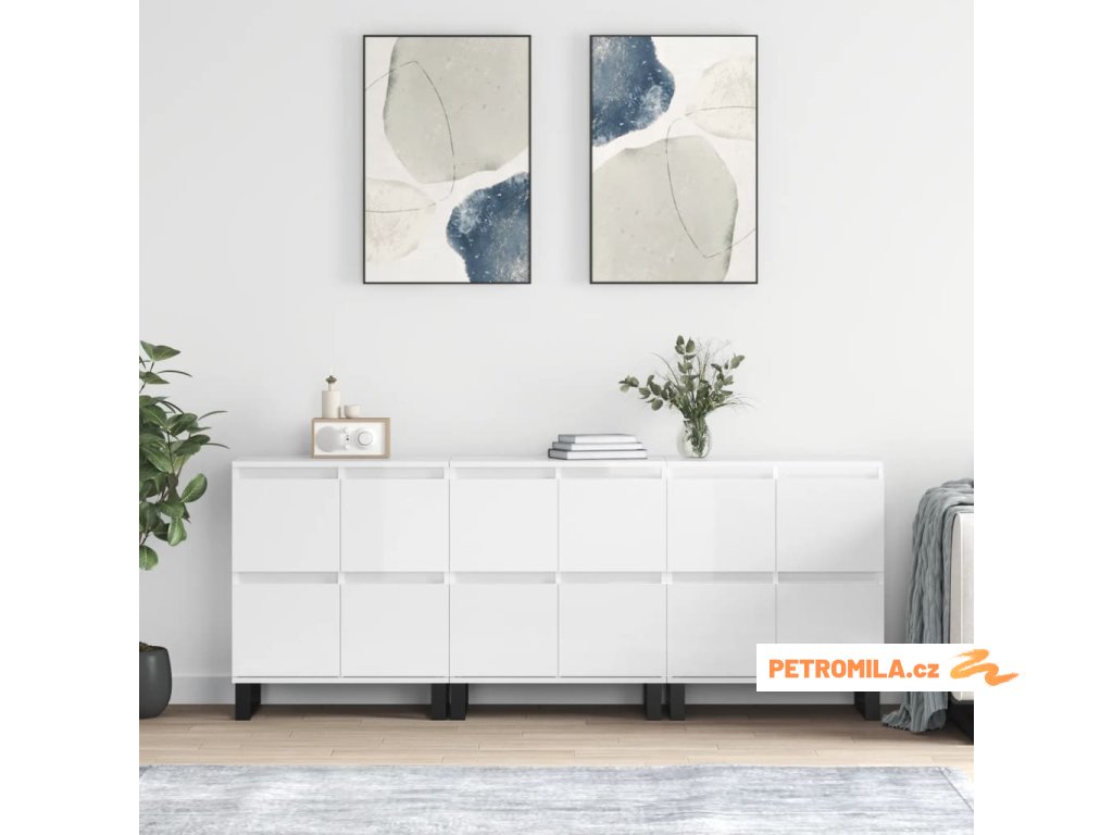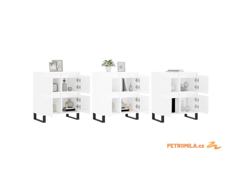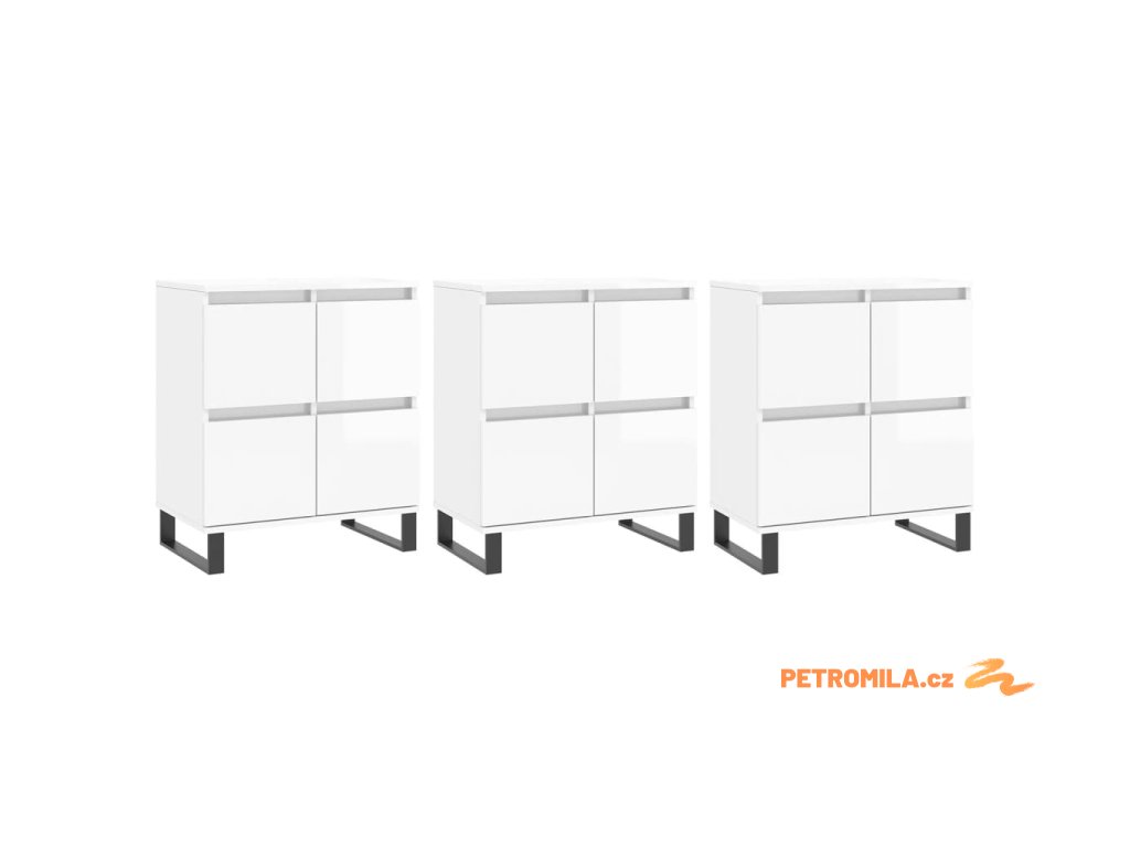 Příborníky 3 ks bílé s vysokým leskem kompozitní dřevo