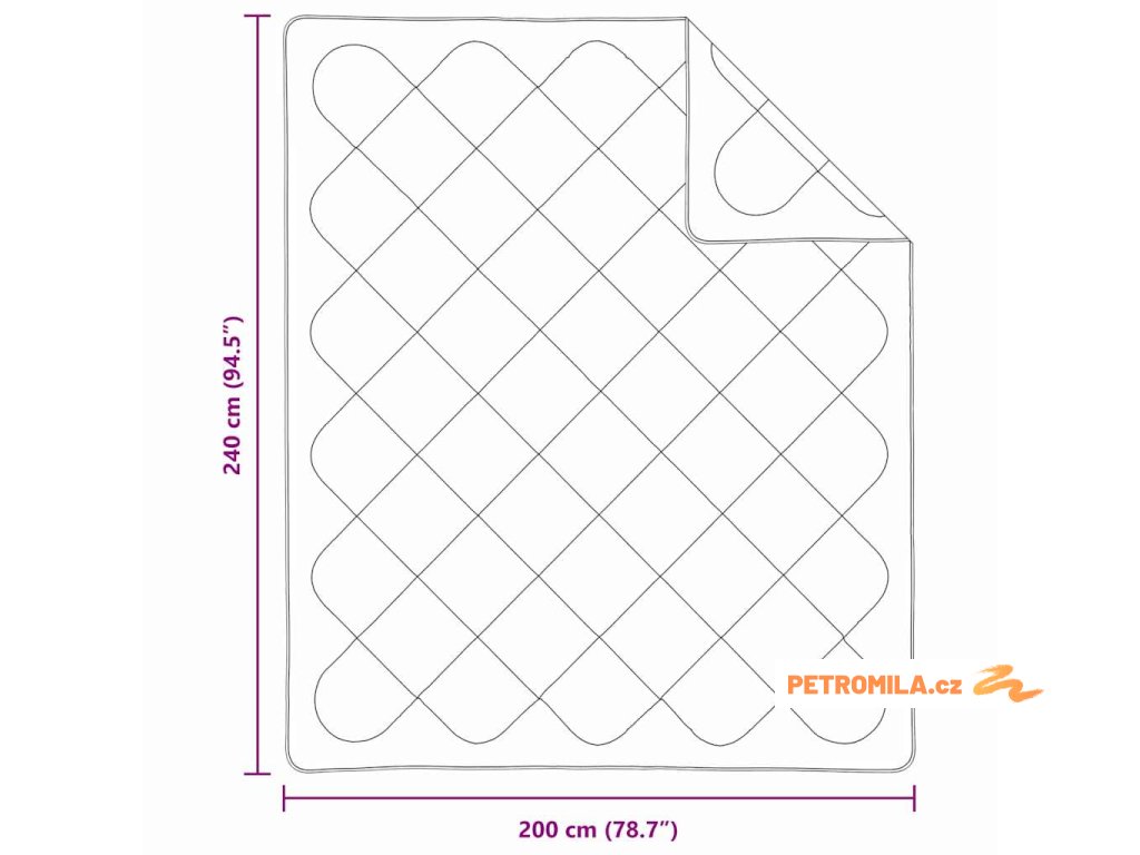- Celkové rozměry: 240 x 202 x 3 cm (D x Š x V)