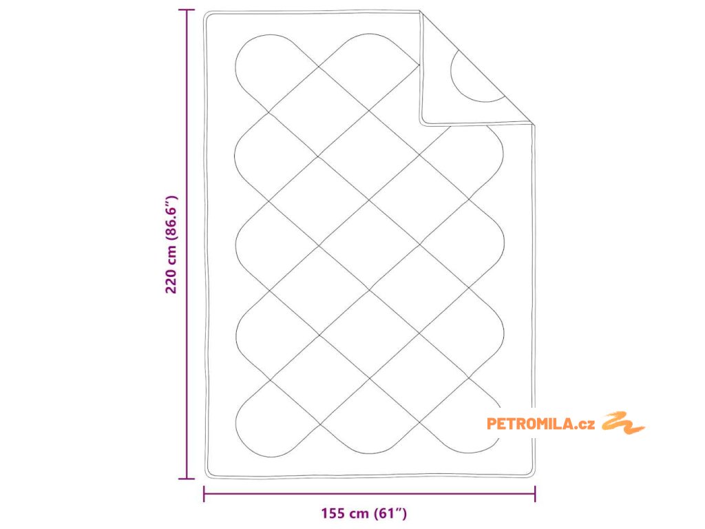 - Celkové rozměry: 220 x 155 x 4 cm (D x Š x V)