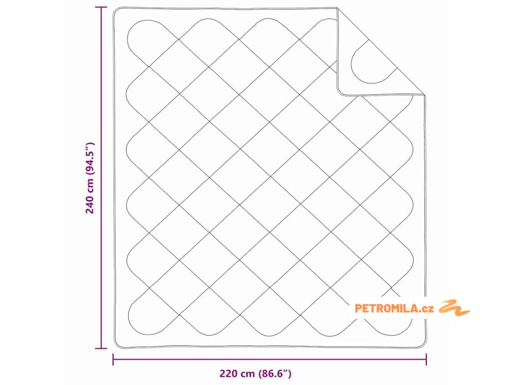 - Celkové rozměry: 240 x 220 x 4 cm (D x Š x V)