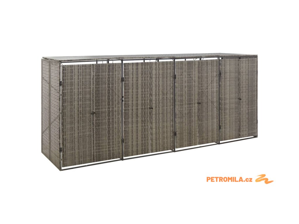 Přístřešek na čtyři popelnice šedý 274 x 80 x 117 cm polyratan