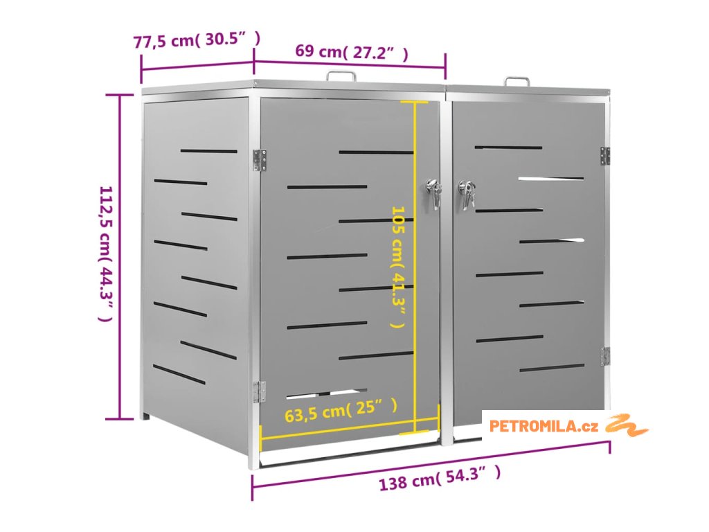 Přístřešek na dvě popelnice 138 x 77,5 x 112,5 cm nerezová ocel