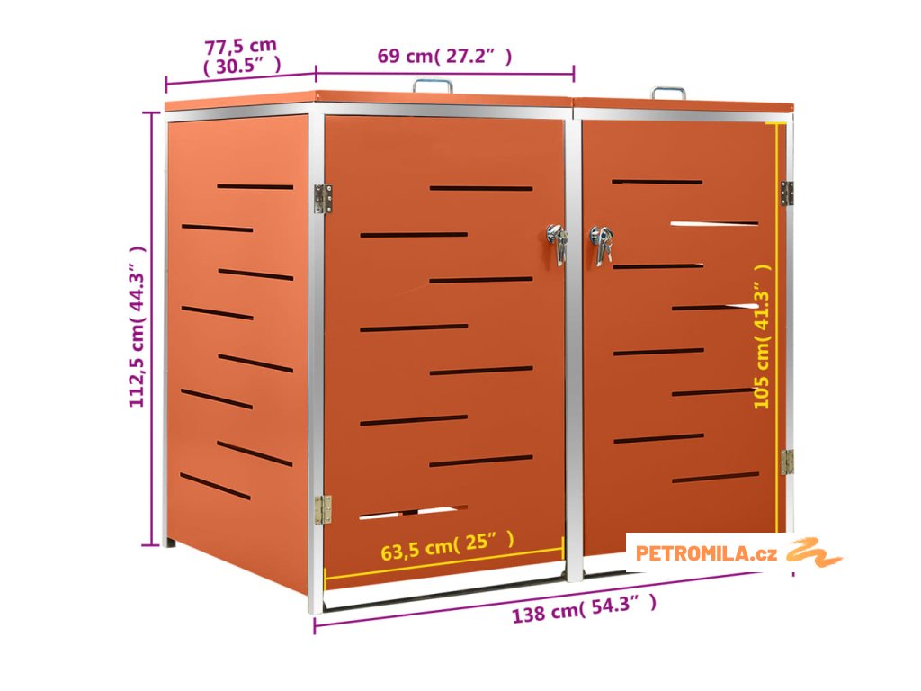 Přístřešek na dvě popelnice 138 x 77,5 x 112,5 cm nerezová ocel