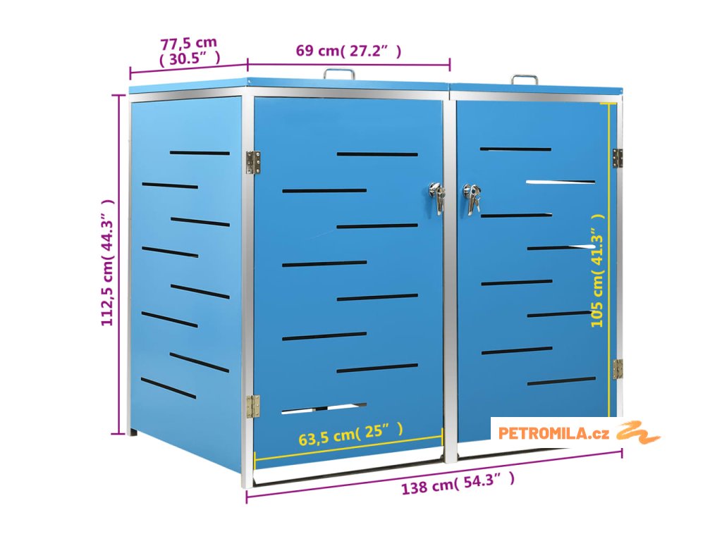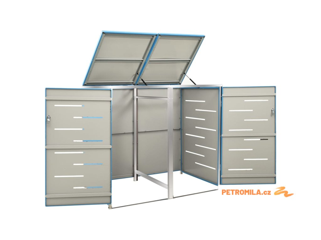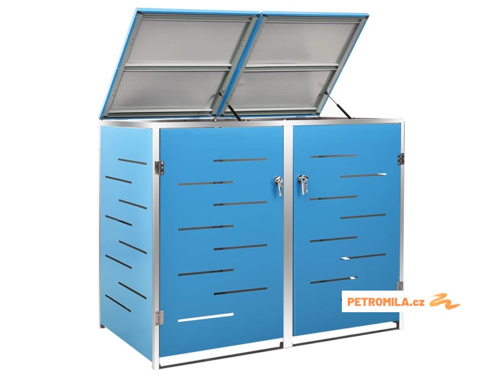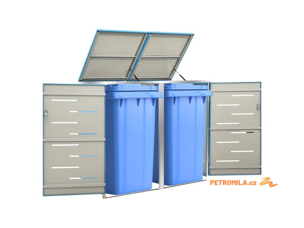 Tento přístřešek na popelnice je vyroben z pozinkovaného ocelového panelu a rámu z nerezové oceli, takže je mimořádně robustní a odolný proti korozi. Dutá konstrukce umožňuje cirkulaci vzduchu a zabraňuje, aby v popelnicích vznikal nepříjemný zápach. Uzamykací systém zároveň zajišťuje bezpečné uložení odpadků. Praktické víko a pružiny navíc usnadňují vkládání a vyjímání popelnic.