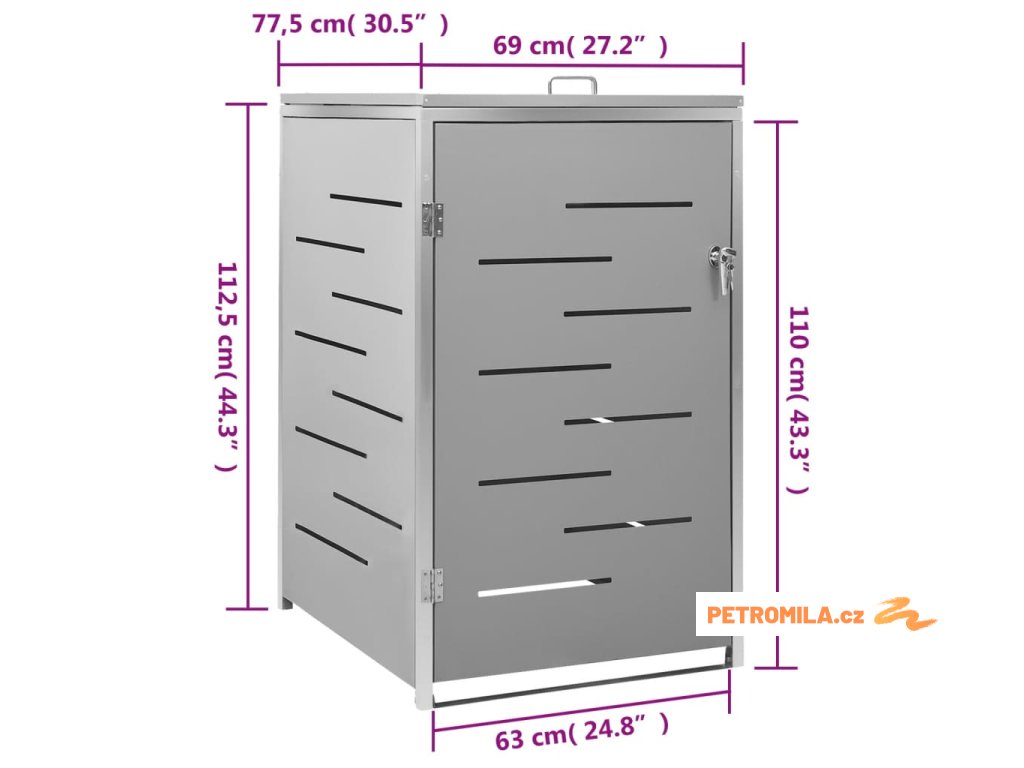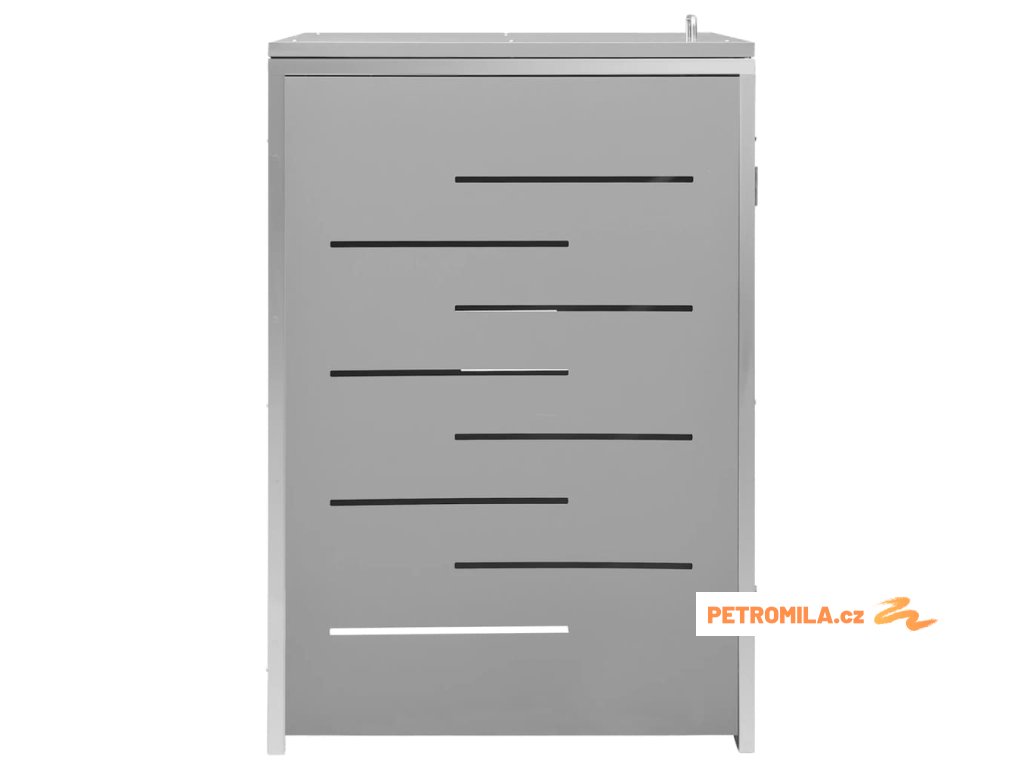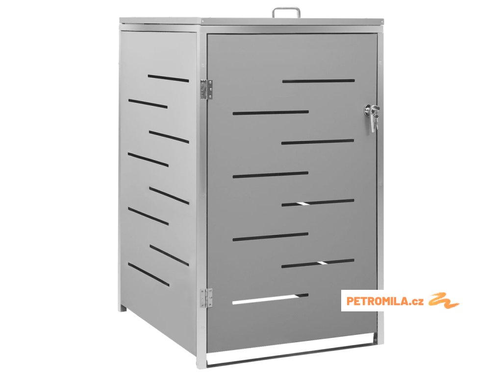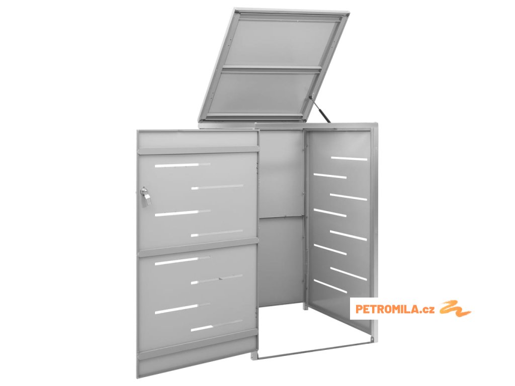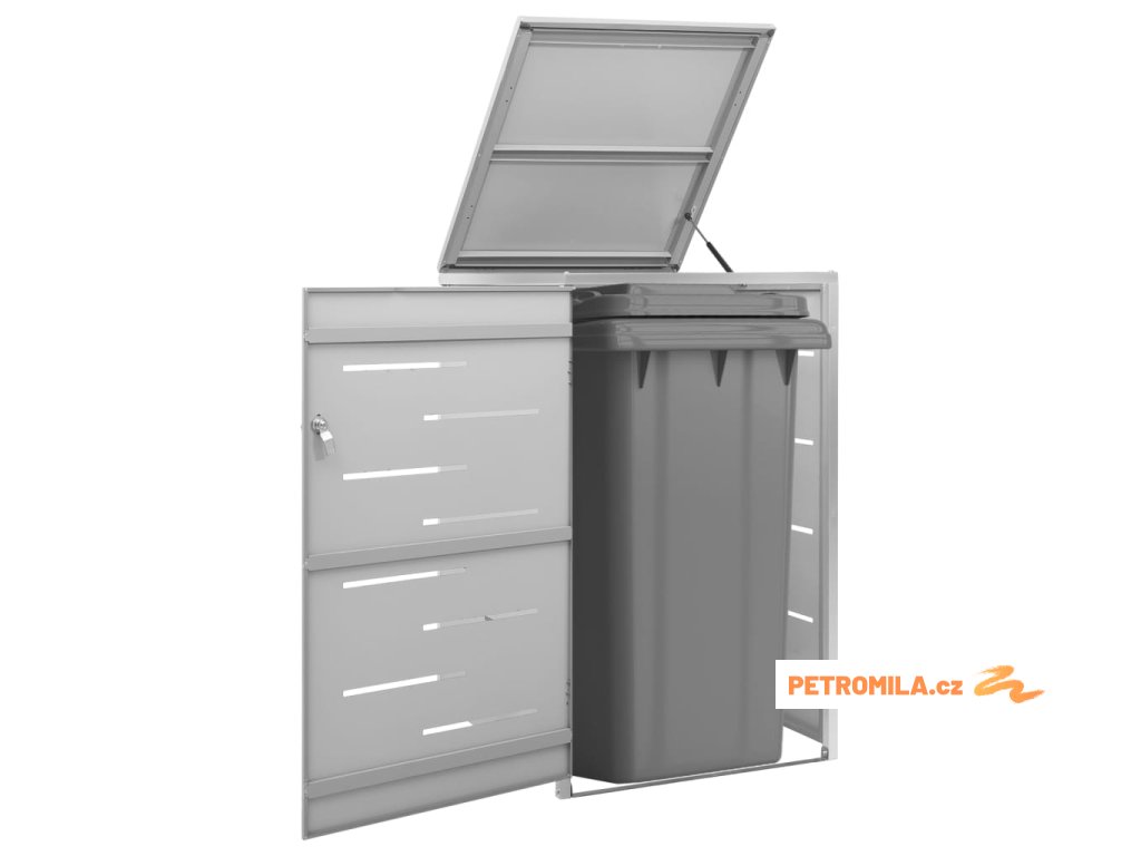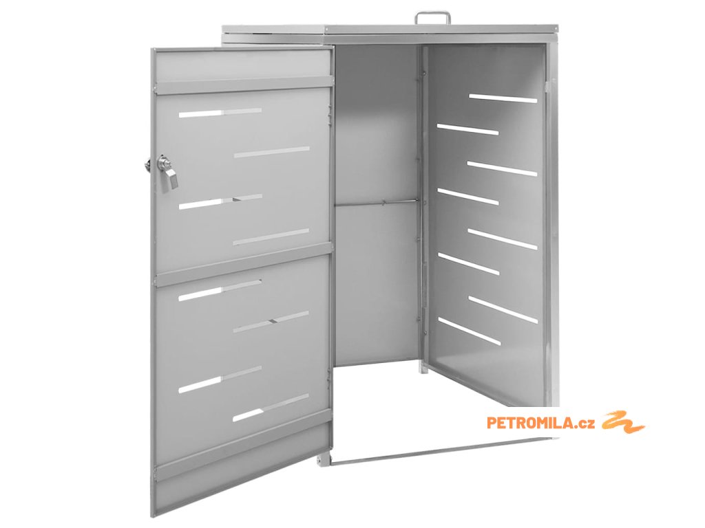 Tento přístřešek na popelnice je vyroben z pozinkovaného ocelového panelu a rámu z nerezové oceli, takže je mimořádně robustní a odolný proti korozi. Dutá konstrukce umožňuje cirkulaci vzduchu a zabraňuje, aby v popelnicích vznikal nepříjemný zápach. Uzamykací systém zároveň zajišťuje bezpečné uložení odpadků. Praktické víko a pružiny navíc usnadňují vkládání a vyjímání popelnic.