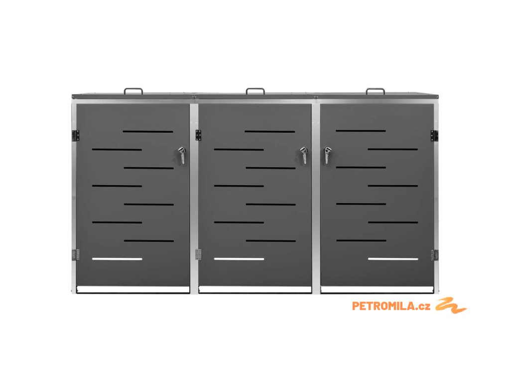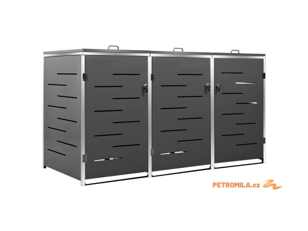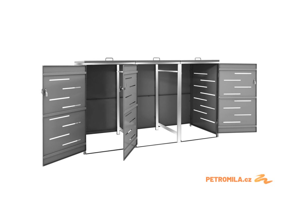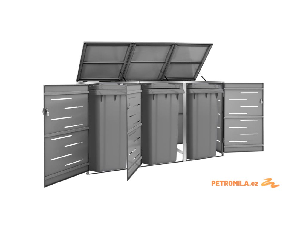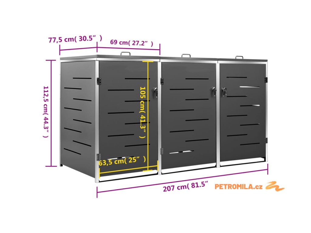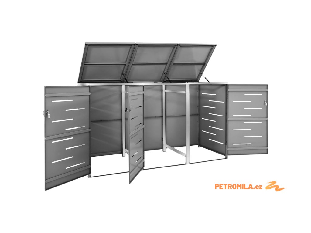 Přístřešek na tři popelnice 207 x 77,5 x 112,5 cm nerezová ocel