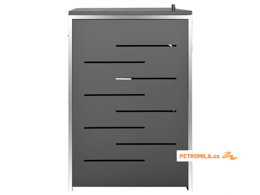 Tento přístřešek na popelnice je vyroben z pozinkovaného ocelového panelu a rámu z nerezové oceli, takže je mimořádně robustní a odolný proti korozi. Dutá konstrukce umožňuje cirkulaci vzduchu a zabraňuje, aby v popelnicích vznikal nepříjemný zápach. Uzamykací systém zároveň zajišťuje bezpečné uložení odpadků. Praktické víko a pružiny navíc usnadňují vkládání a vyjímání popelnic.
