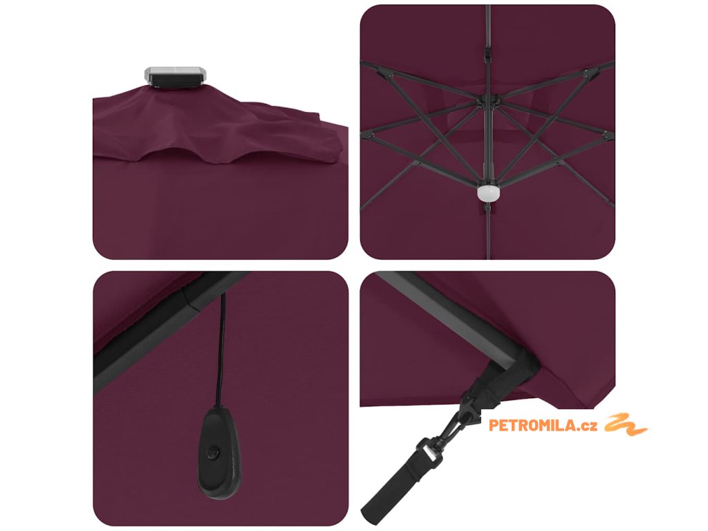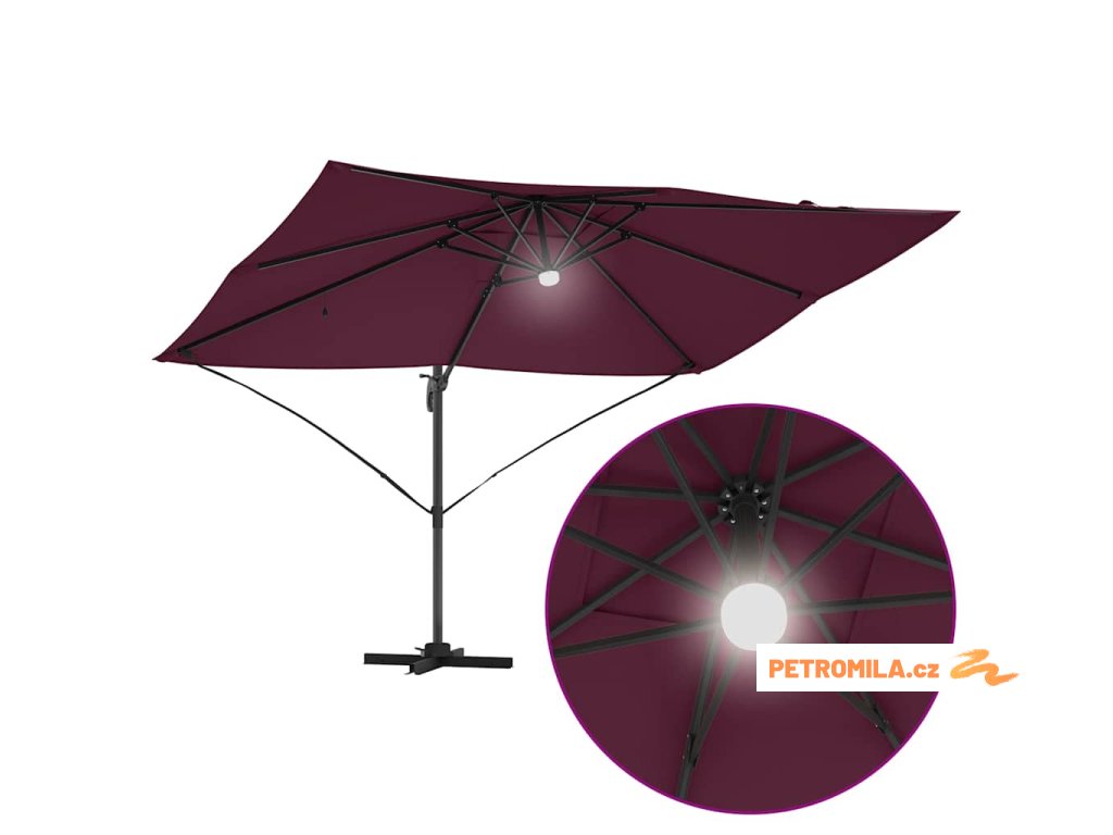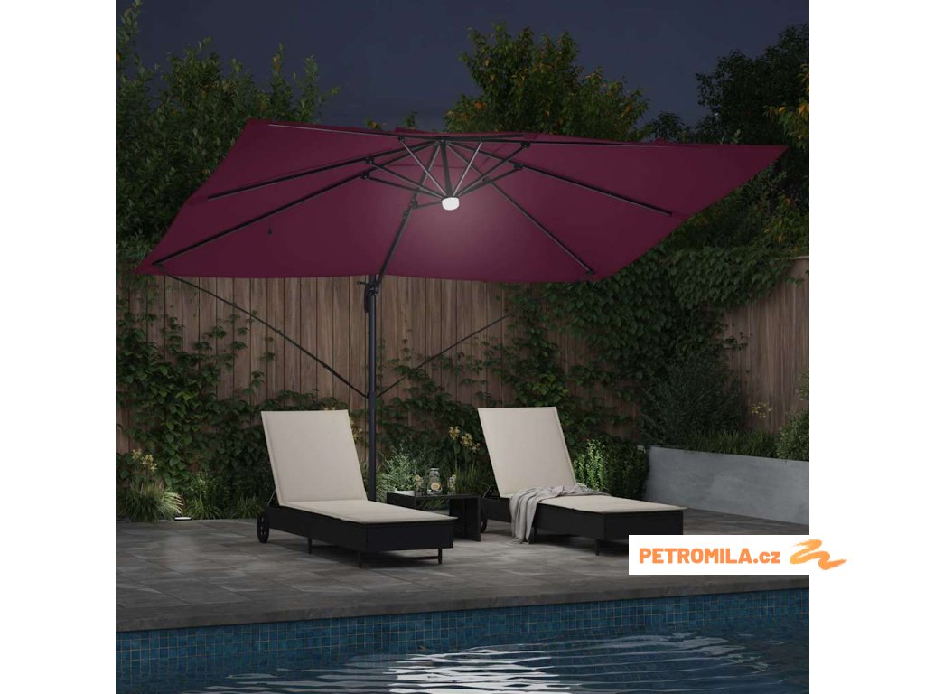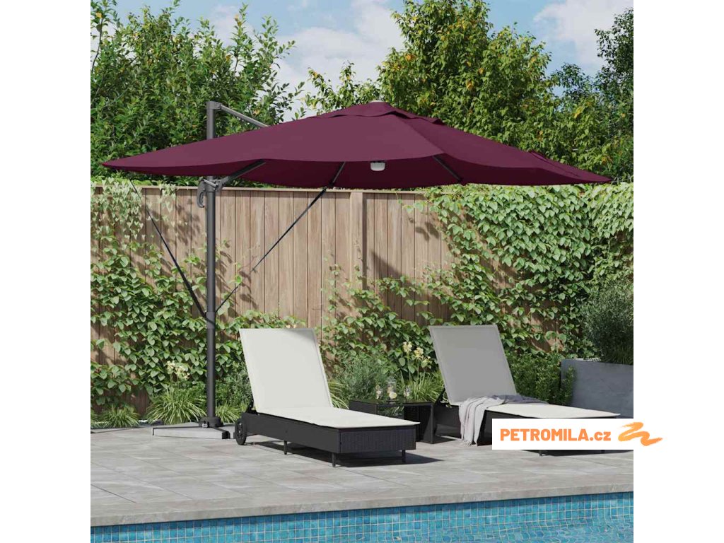 Materiály odolné proti UV záření Vyrobený z odolného polyesteru, deštník Roma je navržen tak, aby odolal dlouhodobému vystavení slunečnímu záření bez vyblednutí. Jeho funkce UV ochrany chrání vaši pokožku během relaxace na slunečných dnech, a zachovává živý vzhled deštníku po celou sezonu. Tato úroveň odolnosti zajišťuje, že vaše venkovní prostory zůstanou tak živé a přívětivé, jak byly v den zakoupení.,Otočení o 360° Deštník má manuální mechanismus, který umožňuje otáčení o 360 stupňů, což poskytuje přizpůsobené rozdělení stínu, jak se slunce pohybuje. Tato nastavitelnost vám umožňuje umístit deštník dokonale pro maximální efektivitu stínu, a zajišťuje pohodlí kdykoli a kdekoli sedíte ve své zahradě. Nabízí flexibilitu a pohodlí během jakékoli venkovní akce.,LED pásky Osvícený LED pásky, tento deštník přidává estetické a funkční osvětlení pro vaše večery. Tato světla zlepšují atmosféru pro noční schůzky, umožňující vám pořádat večeře dlouho po západu slunce. Osvětlení může zvýraznit moderní design a zároveň poskytovat praktickou viditelnost v šeru.,Moderní design Zaměřený na jednoduchost a funkčnost, deštník se pyšní čistými liniemi a minimálními ozdobami, což z něj činí ideální volbu pro současné venkovní prostory. Jeho moderní vzhled hladce ladí s různými zahradními designy, zvyšující celkovou estetiku vašeho venkovního obytného prostoru.,Podrobnosti o montáži Dodán s snadno sledovatelným montážním návodem, deštník vyžaduje šroubovák pro sestavení. Doporučuje se účast dvou osob pro ergonomické sestavení, usnadňující hladký montážní proces, který vás rychle připraví na užívání sluneční ochrany. Komponenty deštníku se spojují bez problémů, zajišťující bezproblémovou montáž a stabilitu pro komerční i rezidenční použití.- Barva: Červená a černá