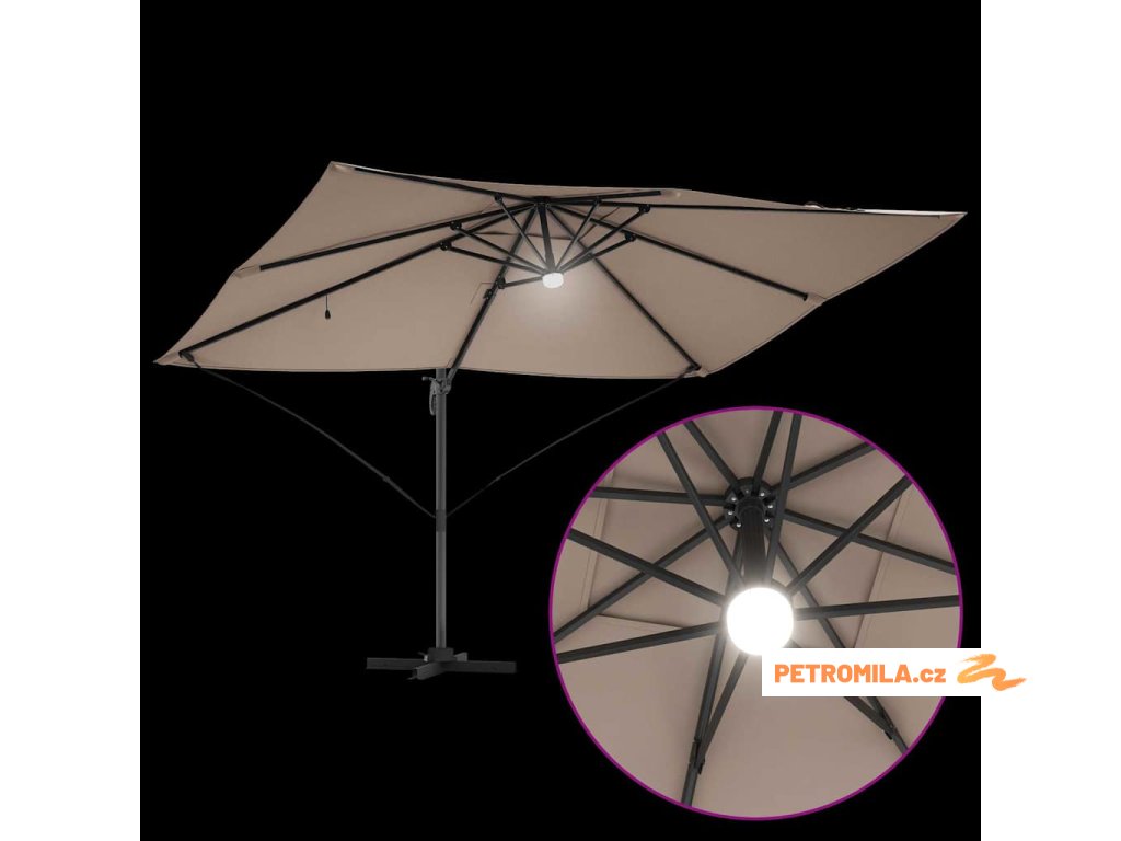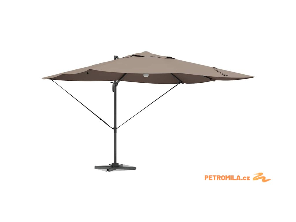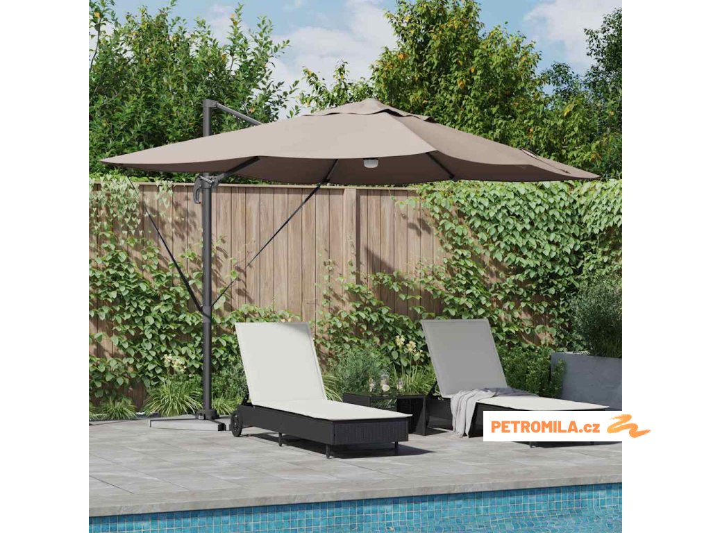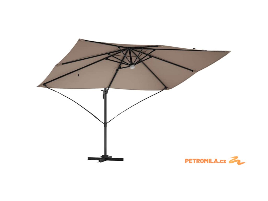Materiály odolné proti UV záření Vyrobený z odolného polyesteru, deštník Roma je navržen tak, aby odolal dlouhodobému vystavení slunečnímu záření bez vyblednutí. Jeho funkce UV ochrany chrání vaši pokožku během relaxace na slunečných dnech, a zachovává živý vzhled deštníku po celou sezonu. Tato úroveň odolnosti zajišťuje, že vaše venkovní prostory zůstanou tak živé a přívětivé, jak byly v den zakoupení.,Otočení o 360° Deštník má manuální mechanismus, který umožňuje otáčení o 360 stupňů, což poskytuje přizpůsobené rozdělení stínu, jak se slunce pohybuje. Tato nastavitelnost vám umožňuje umístit deštník dokonale pro maximální efektivitu stínu, a zajišťuje pohodlí kdykoli a kdekoli sedíte ve své zahradě. Nabízí flexibilitu a pohodlí během jakékoli venkovní akce.,LED pásky Osvícený LED pásky, tento deštník přidává estetické a funkční osvětlení pro vaše večery. Tato světla zlepšují atmosféru pro noční schůzky, umožňující vám pořádat večeře dlouho po západu slunce. Osvětlení může zvýraznit moderní design a zároveň poskytovat praktickou viditelnost v šeru.,Moderní design Zaměřený na jednoduchost a funkčnost, deštník se pyšní čistými liniemi a minimálními ozdobami, což z něj činí ideální volbu pro současné venkovní prostory. Jeho moderní vzhled hladce ladí s různými zahradními designy, zvyšující celkovou estetiku vašeho venkovního obytného prostoru.,Podrobnosti o montáži Dodán s snadno sledovatelným montážním návodem, deštník vyžaduje šroubovák pro sestavení. Doporučuje se účast dvou osob pro ergonomické sestavení, usnadňující hladký montážní proces, který vás rychle připraví na užívání sluneční ochrany. Komponenty deštníku se spojují bez problémů, zajišťující bezproblémovou montáž a stabilitu pro komerční i rezidenční použití.- Barva: Světlobéžová a černá