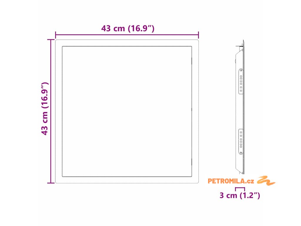 - Celkové rozměry: 43 x 43 x 3 cm (D x Š x V)