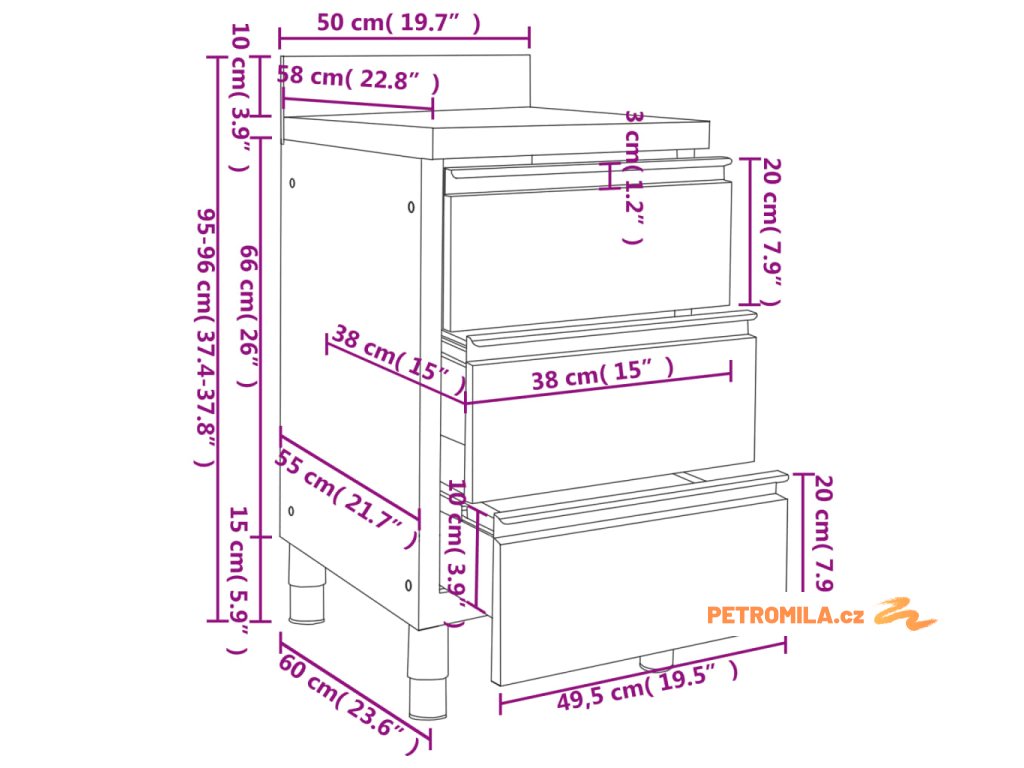 Profesionální kuchyňské skříňky se 3 zásuvkami 2 ks 50x60x96 cm