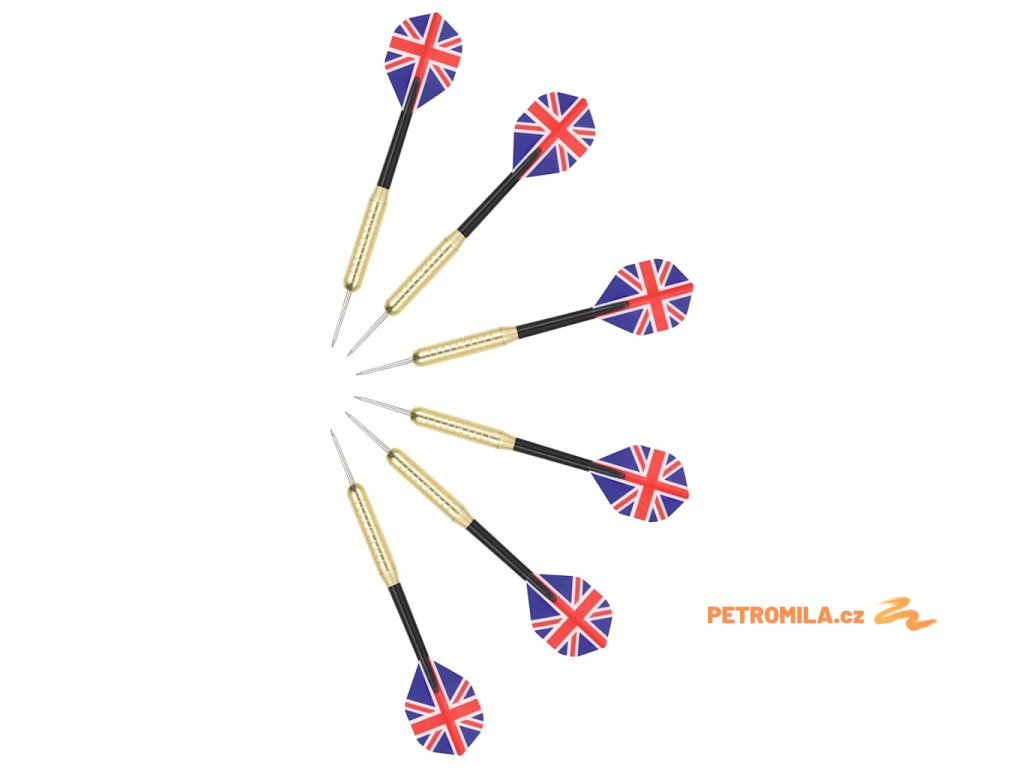 - Materiál šipky: ocelová špička + PET letka + tělo s mosazným povrchem