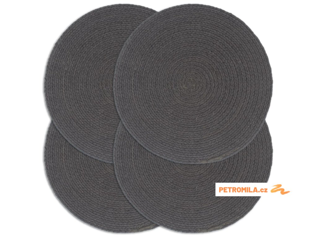 Prostírání 4 ks tmavě šedé 38 cm kulaté bavlna
