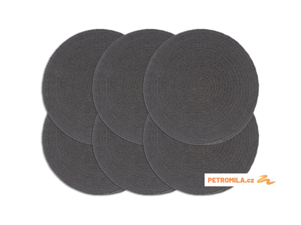 Prostírání 6 ks tmavě šedé 38 cm kulaté bavlna