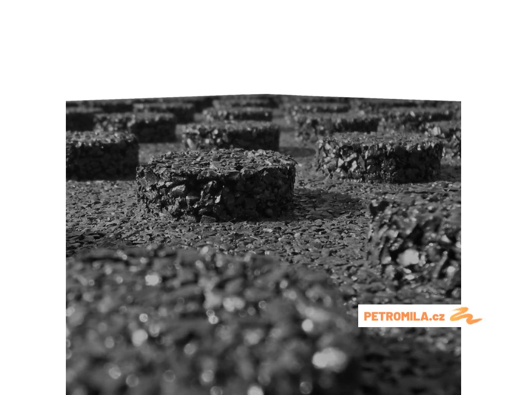 Podlahové dlaždice jsou vyrobeny z odolné a pružné pryže, která je pevná a protiskluzová. Při používání drží pevně na místě. Pryžové dlaždice jsou silné 3 cm a mají vysokou hustotu, takže poskytují ochranu za každého počasí. Navíc účinně absorbují nárazy, jsou proto ideálním typem povrchu pro dětská hřiště (jak vevnitř, tak venku), na zahradách a dalších místech pro venkovní aktivity.