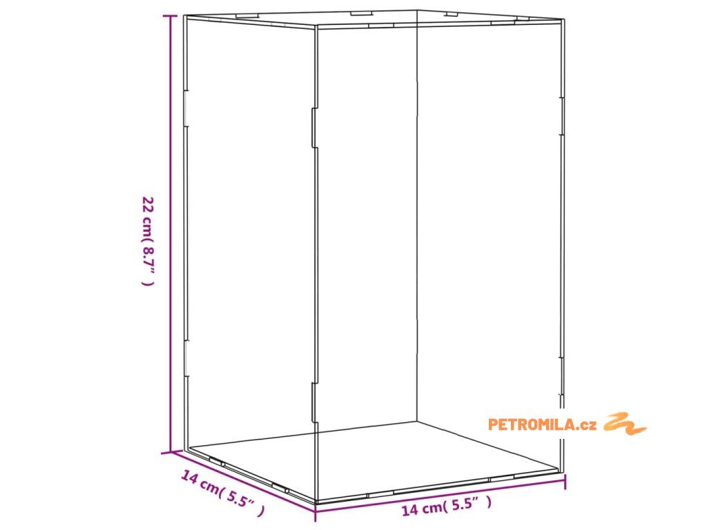 Průhledná reklamní krabice 14 x 14 x 22 cm akrylová