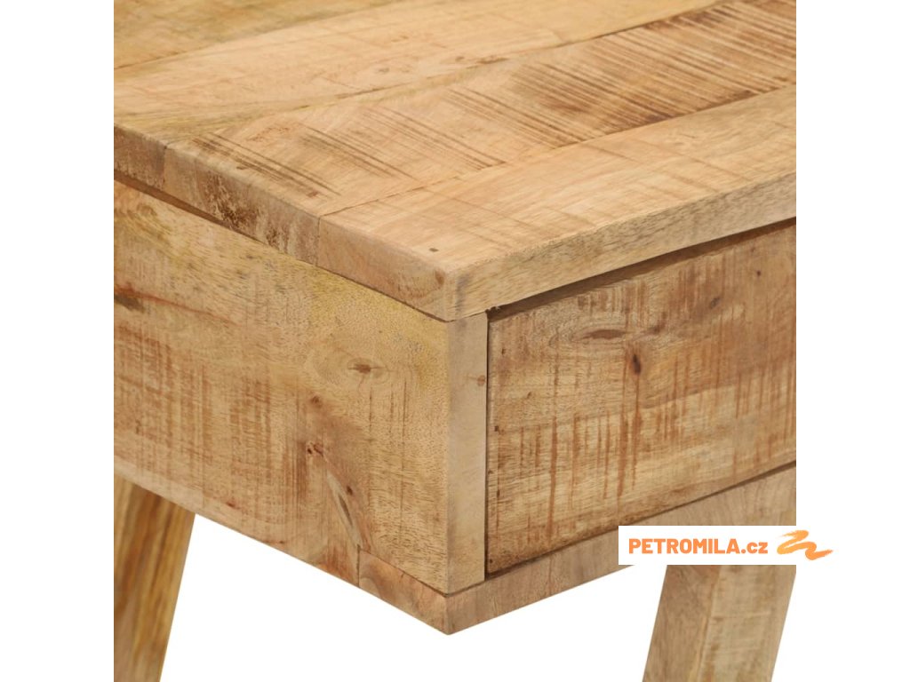 Tento stůl je vyrobený z masivního hrubého mangovníkového dřeva a působí velmi originálně. Vzhledem k vynikajícímu řemeslnému zpracování a krásné struktuře mangovníkového dřeva je každý kus nábytku jedinečný a mírně odlišný od ostatních. Stolní deska poskytuje stabilní a bezpečnou plochu k odkládání nápojů, košíků s ovocem, váz či dalších dekorativních předmětů. Má dvě zásuvky, které poskytují dostatek prostoru pro uložení drobností, jako jsou klíče, poznámkové bloky a další předměty. Tento stůl lze využít i jako počítačový, pracovní, kancelářský či studijní stůl, stůl na čtení atd.
