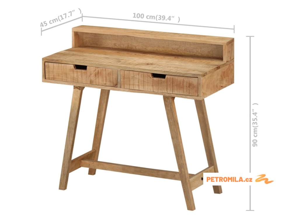 Psací stůl 100 x 45 x 90 cm masivní hrubé mangovníkové dřevo