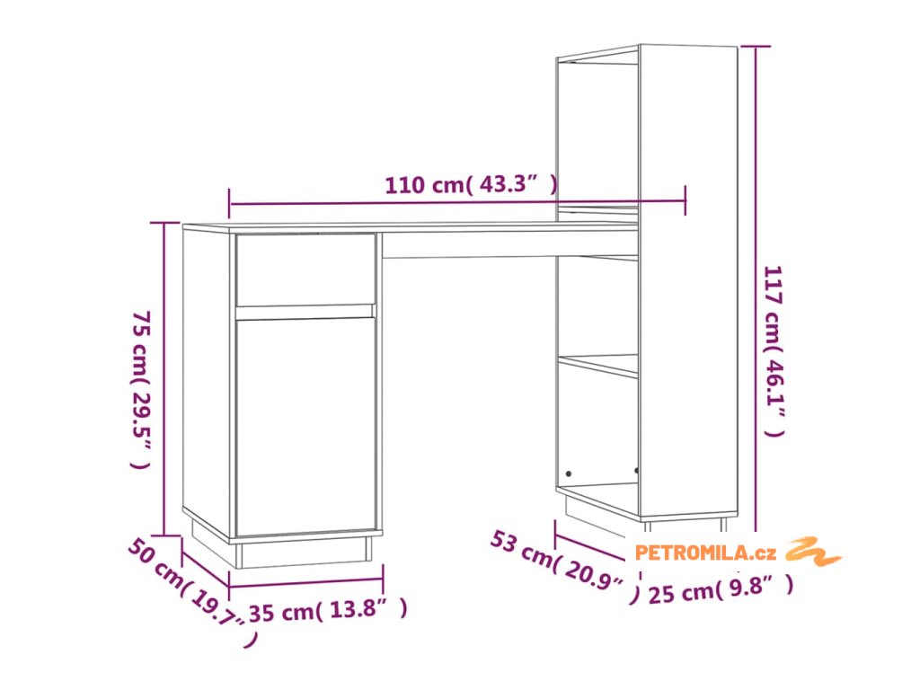 Psací stůl 110x53x117 cm masivní borové dřevo