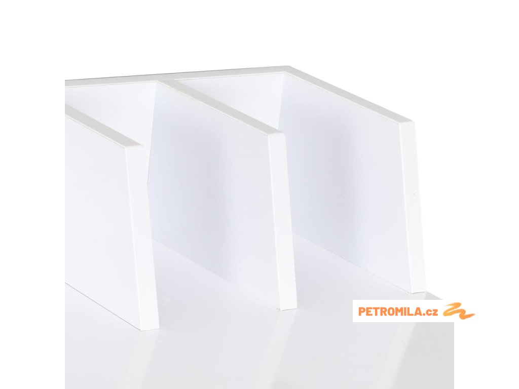 - Vyvýšená zadní část, boční desky a malé přihrádky