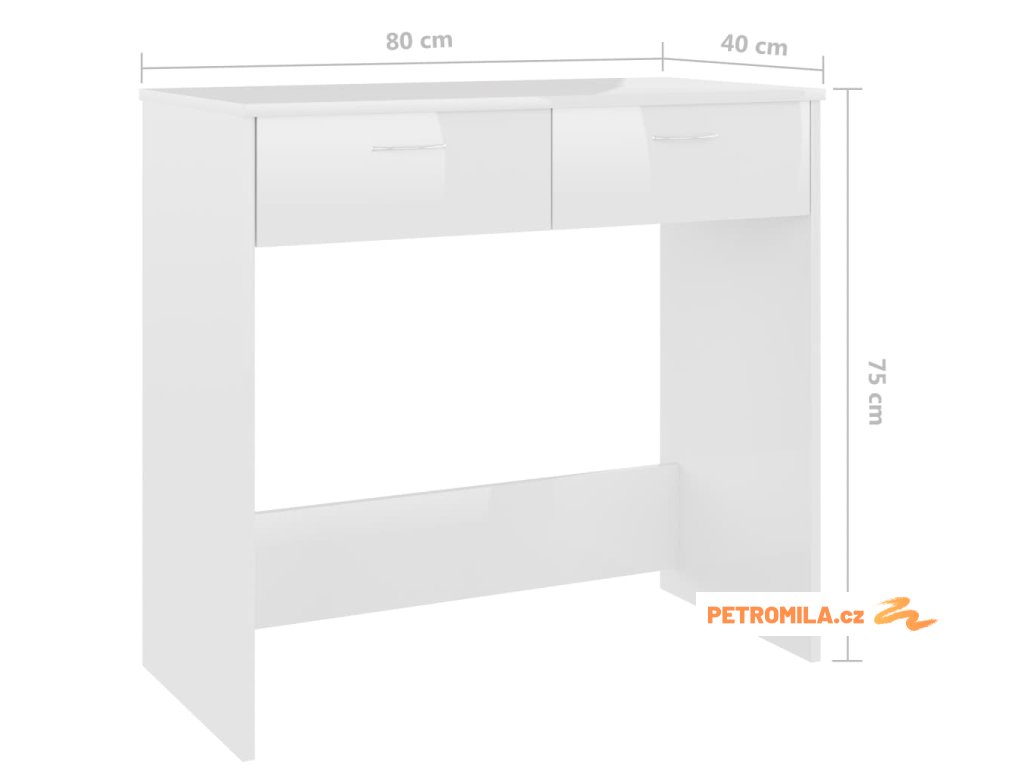 Psací stůl bílý s vysokým leskem 80x40x75 cm kompozitní dřevo