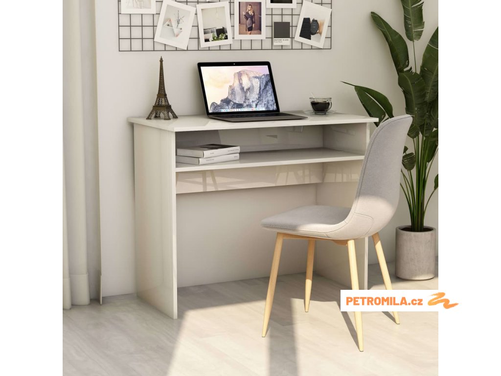 Psací stůl bílý s vysokým leskem 90x50x74 cm kompozitní dřevo
