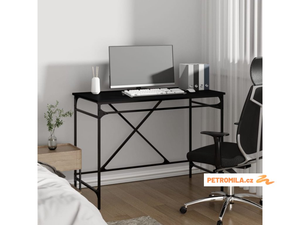 Psací stůl černý 100 x 50 x 75 cm kompozitní dřevo a železo