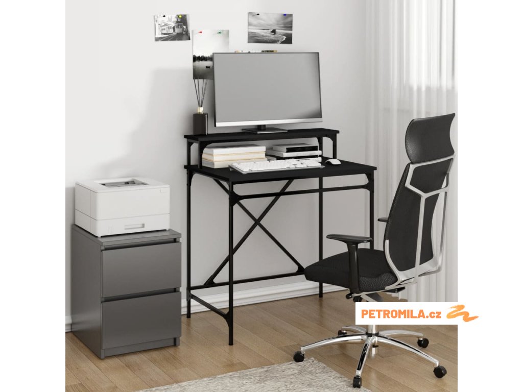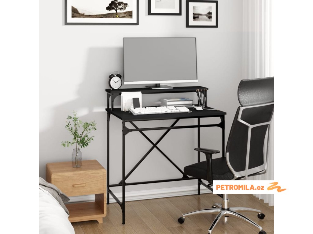 - Praktická police: Díky horní polici můžete mít monitor ve výšce očí a pracovat ve zdravém postoji, což vám ušetří nepříjemnosti s bolestmi krku a zad.