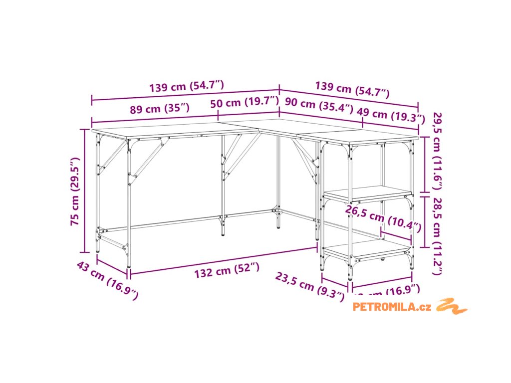Psací stůl dub sonoma 139 x 139 x 75 cm kompozitní dřevo