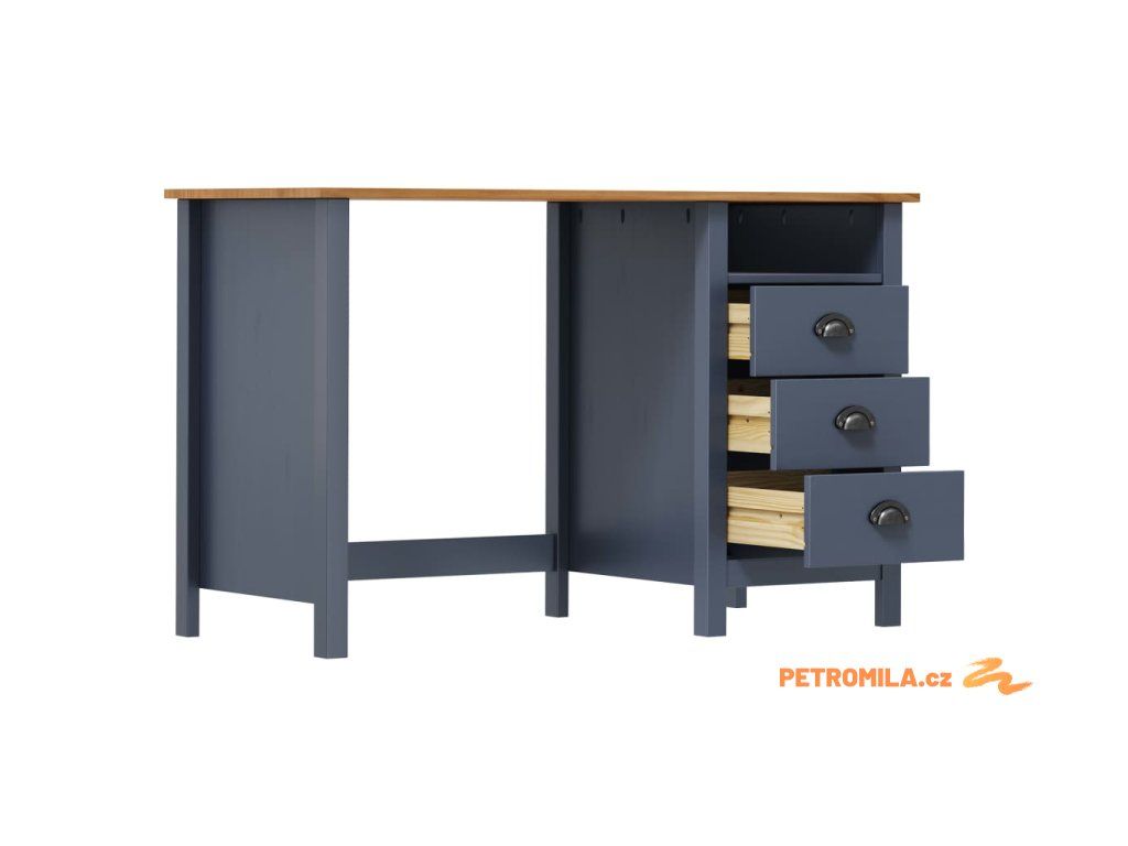 Psací stůl Hill 3 zásuvky šedý 120x50x74 cm masivní borovice
