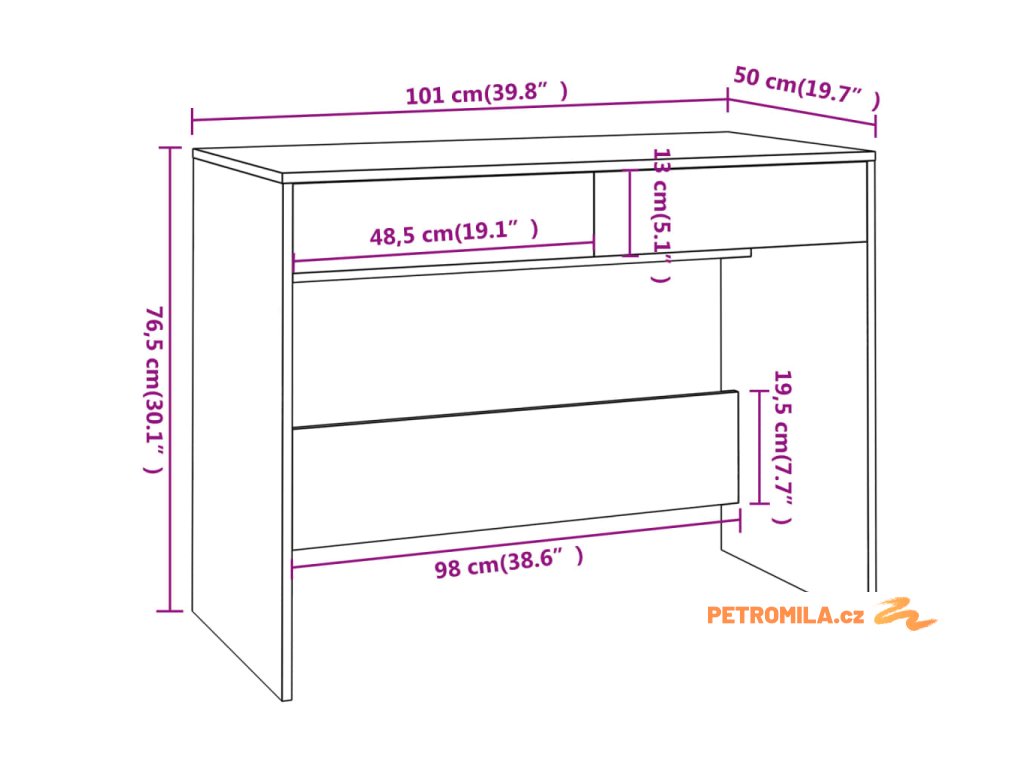Psací stůl kouřový dub 101 x 50 x 76,5 cm dřevotříska