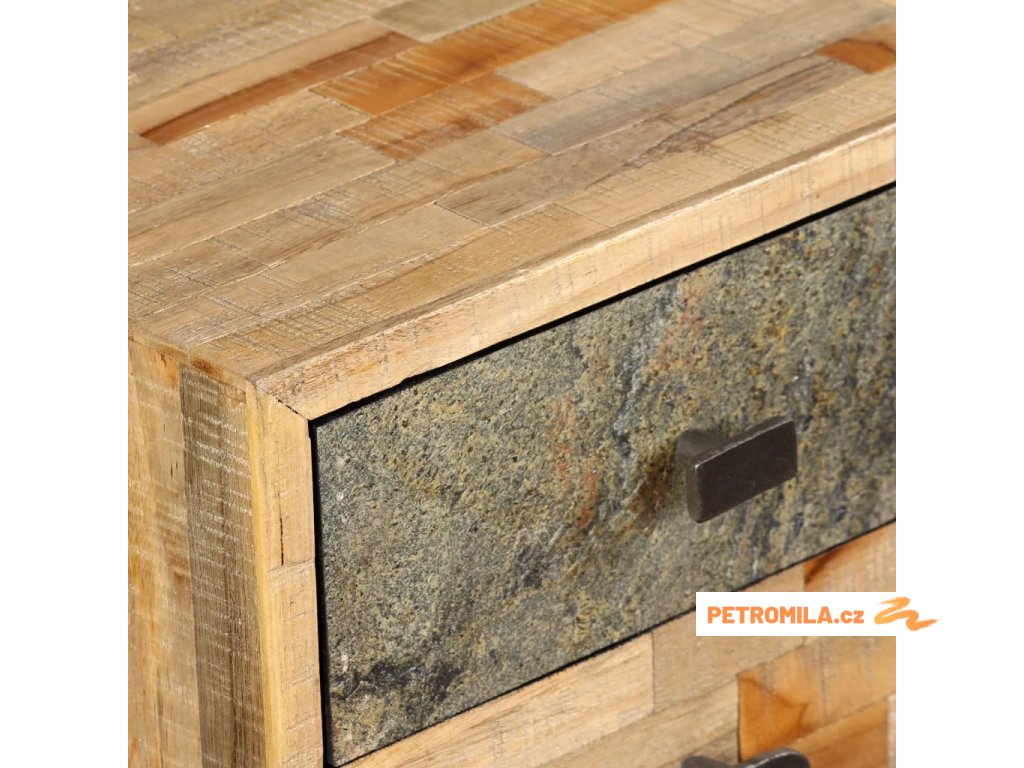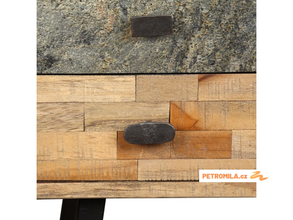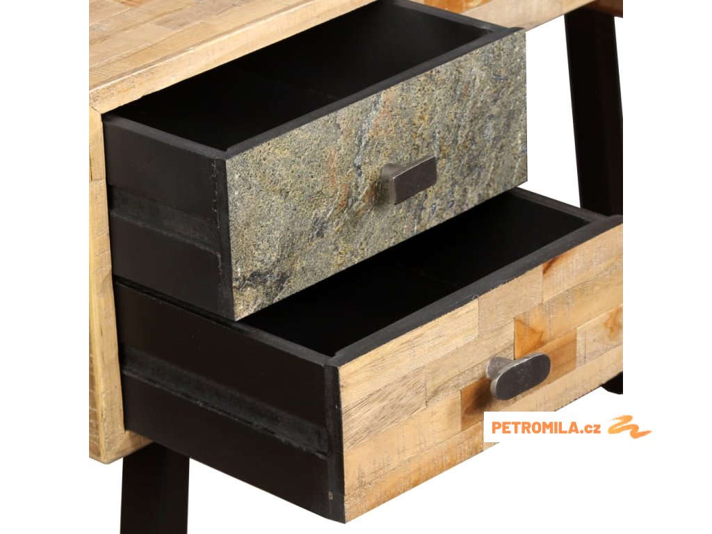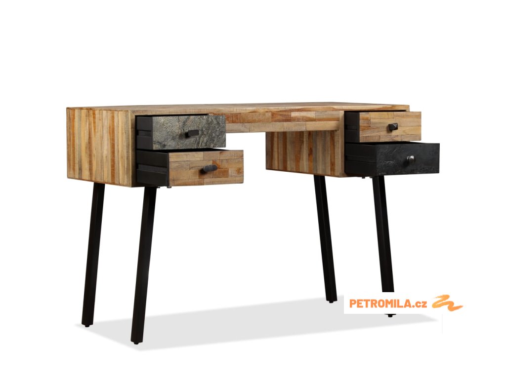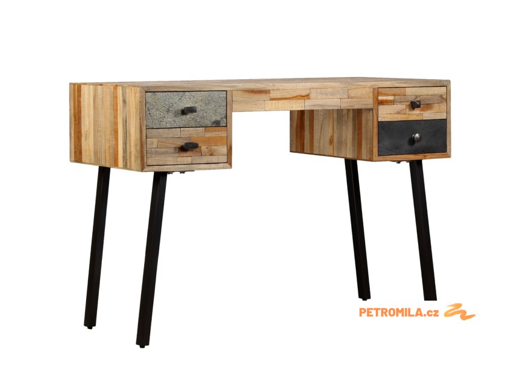 Psací stůl je vyroben z recyklovaného teaku, který je masivní, stabilní, odolný a krásný. Do jeho čtyř prostorných zásuvek můžete ukládat různé předměty jako knihy, zápisníky, pera a další drobnosti. Mramorovaný povrch zásuvky zvyšuje jedinečnost a vintage styl stolu. Velká péče byla věnována všem krokům výrobního procesu, ať už je řeč o rekombinování, leštění, či lakování.