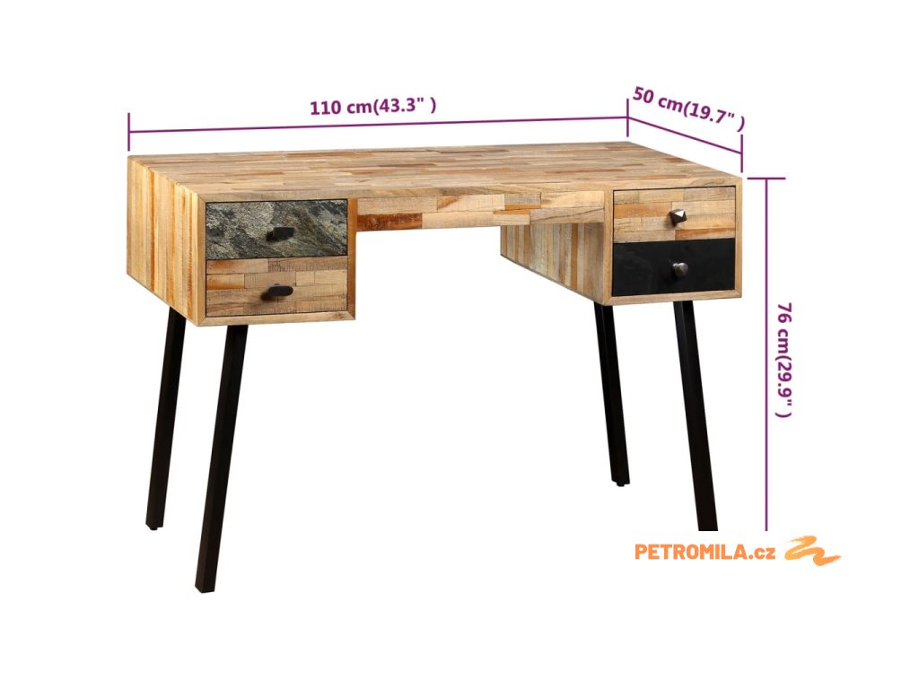 Psací stůl masivní recyklovaný teak 110 x 50 x 76 cm