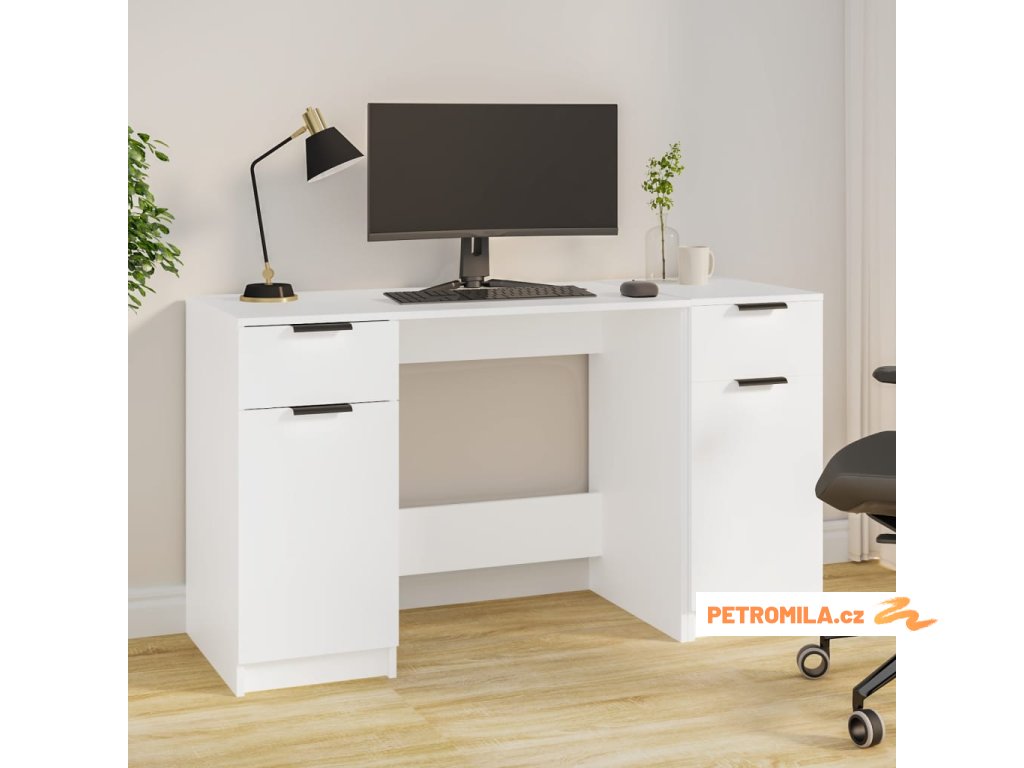 Psací stůl s boční skříňkou bílá kompozitní dřevo