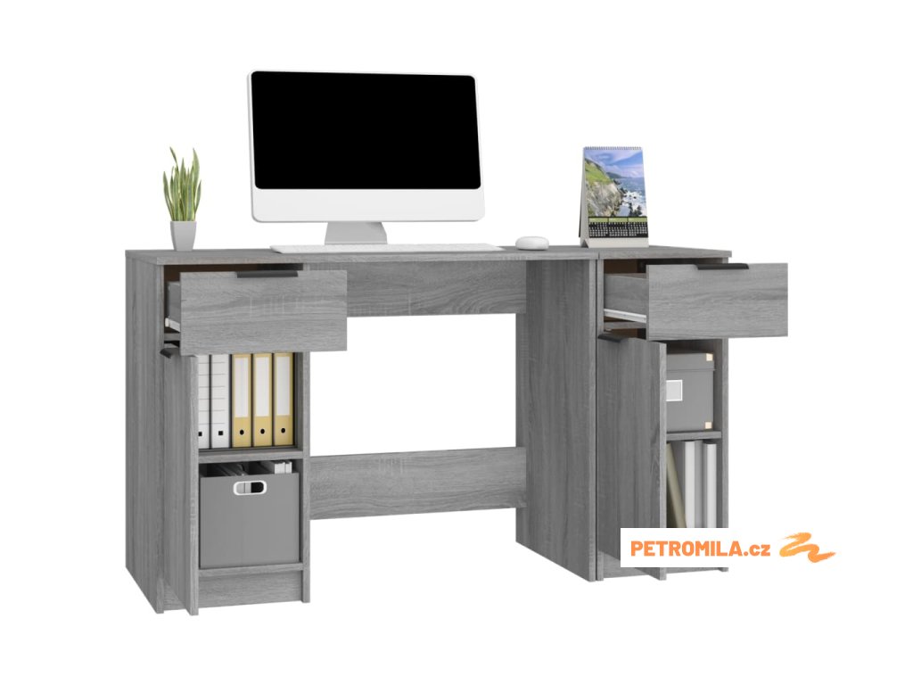 Psací stůl s boční skříňkou šedý sonoma kompozitní dřevo