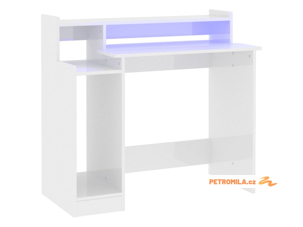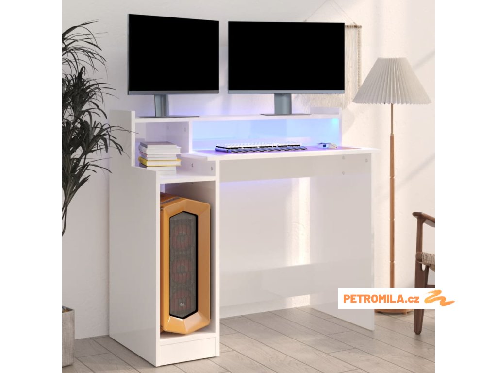 Psací stůl s LED lesklý bílý 97 x 45 x 90 cm kompozitní dřevo