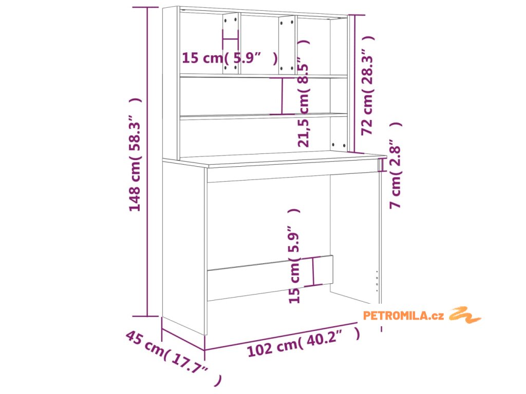 Psací stůl s policemi dub sonoma 102x45x148 cm kompozitní dřevo