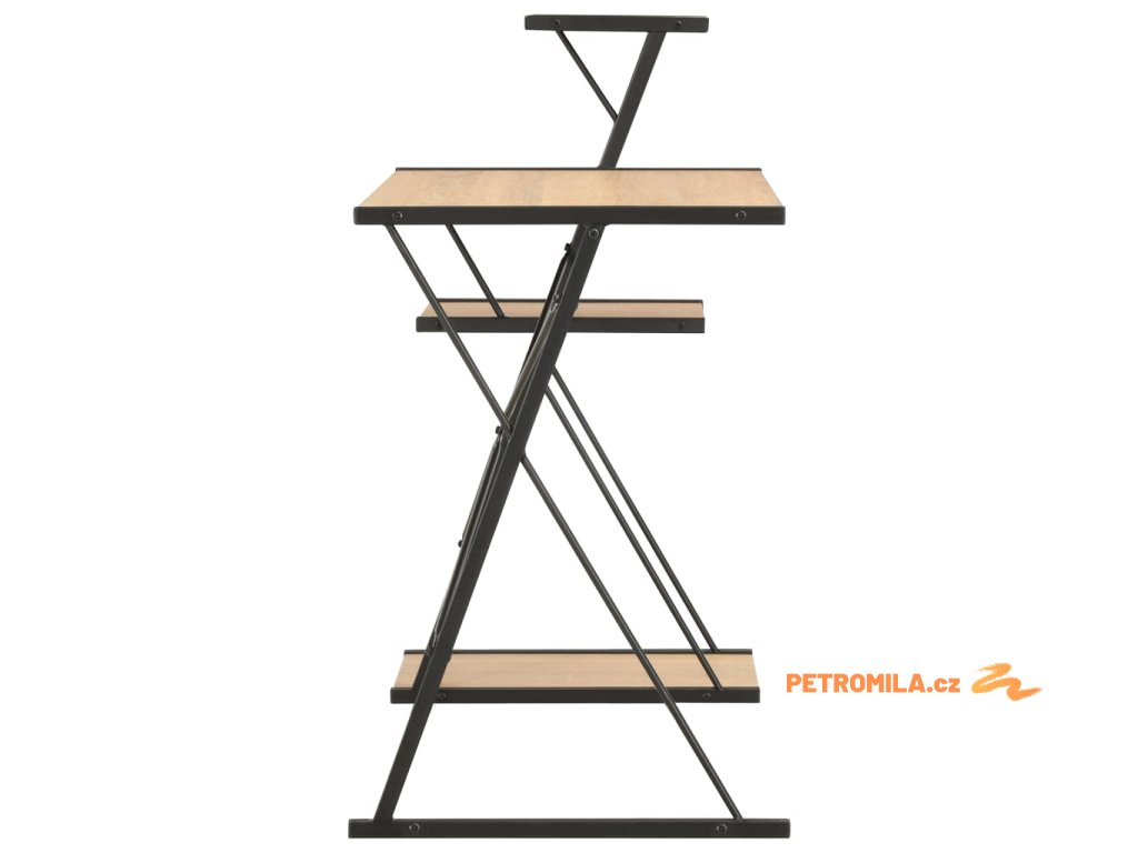 Tento jedinečný a elegantní stolek má prostorné a robustní regály. Velká stolní deska je ideální pro umístění počítače a příslušenství, takže je skvělým pracovním místem pro papírování, kancelářské práce a studium, zatímco integrované police poskytují další úložný a odkládací prostor pro vaše knihy, složky, dokumenty nebo zarámované fotografie, ozdobné předměty, rostliny atd.