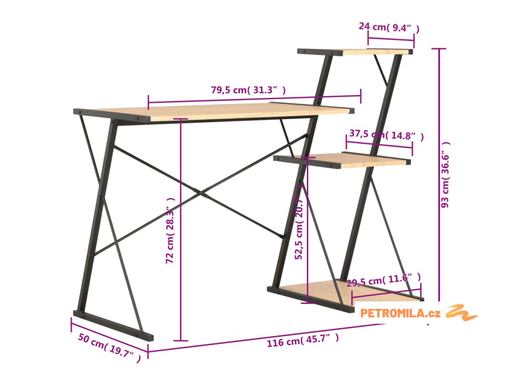 Psací stůl s poličkou černý a dub 116 x 50 x 93 cm
