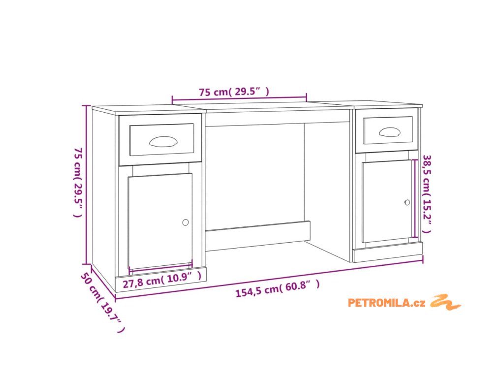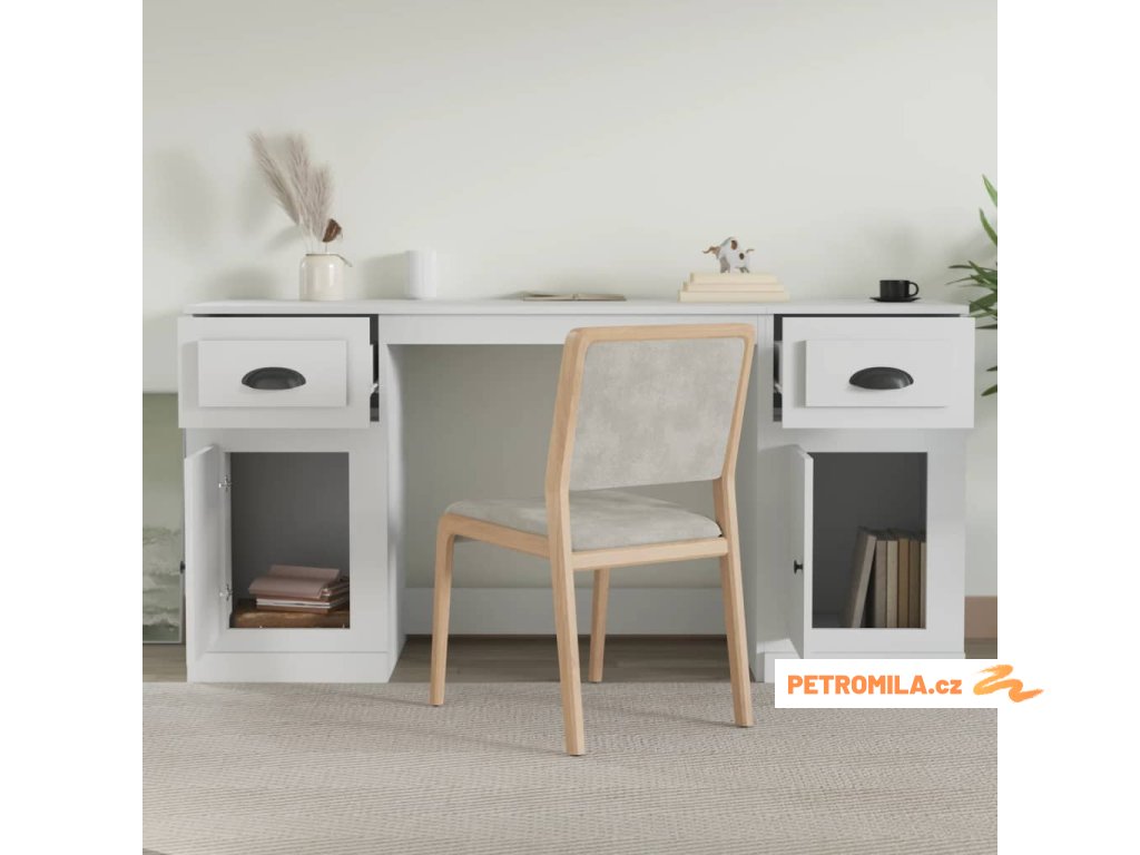 Tento psací stůl se skříňkami dodá vašemu studijnímu nebo pracovnímu prostředí elegantní šarm.